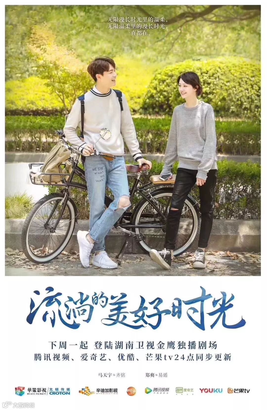 《流淌的美好时光》由华策克顿旗下辛迪加影视,腾讯视频联合出品,由刘飞、刘辰光、施适编剧,马天宇、郑爽领衔主演的现实主义青春剧,已登陆湖南卫视金鹰独播剧场,并在腾讯视频、爱奇艺、优酷、芒果tv同步更新。该剧讲述了上海弄堂里一起长大的齐铭(马天宇 饰)与易遥(郑爽 饰)跨越二十年时光,相互守护、共同成长的令人向往的暖心青春故事。