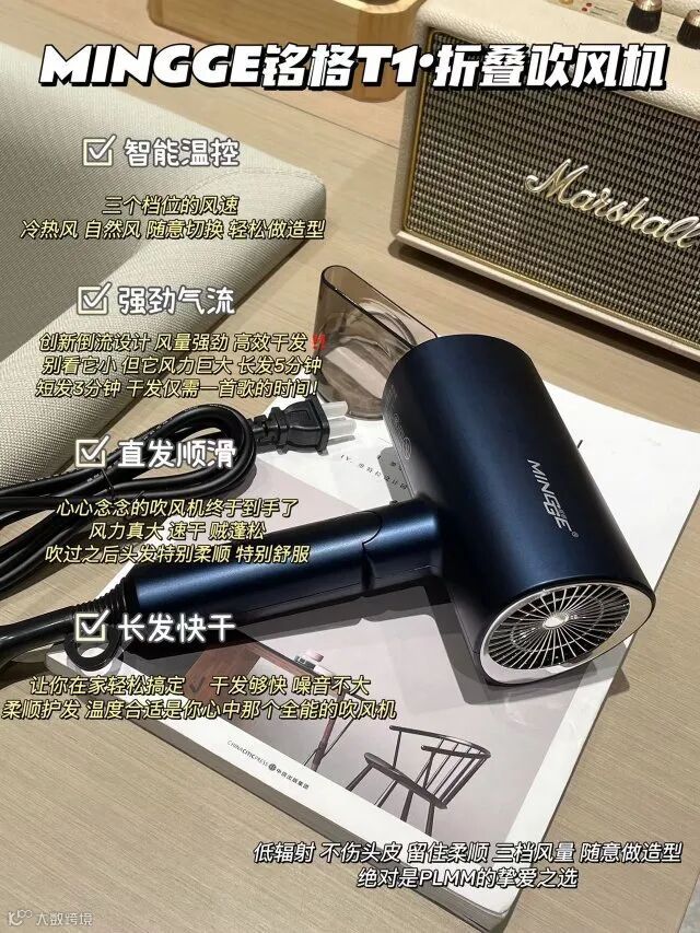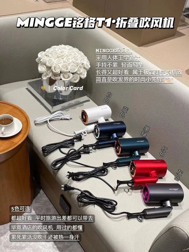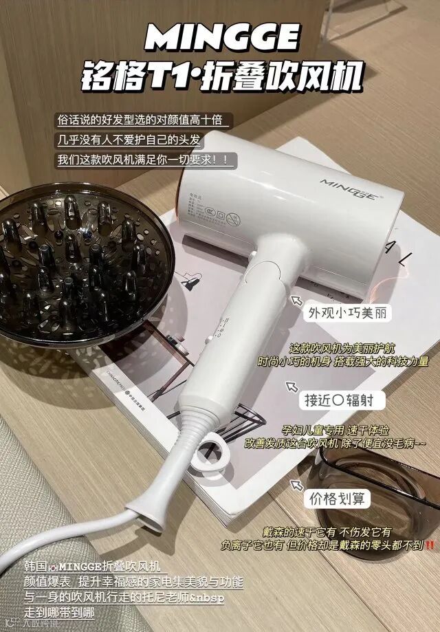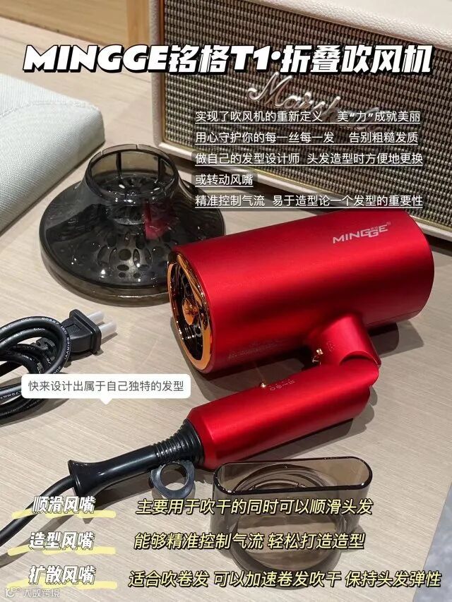 【粉丝群补贴】铭格T1折叠吹风机(MINGGE)功率1800W 3C认证 原价:159元 粉丝群补贴价:99元