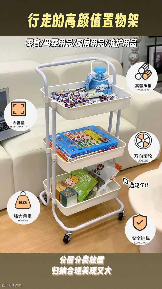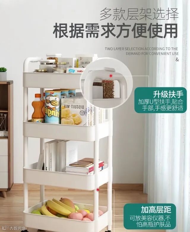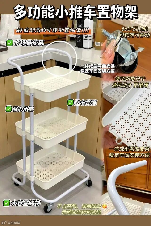 【粉丝群补贴】多功能小推车三层置物架 43*40*87cm 原价:139元 粉丝群补贴价:99元