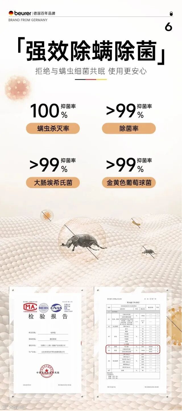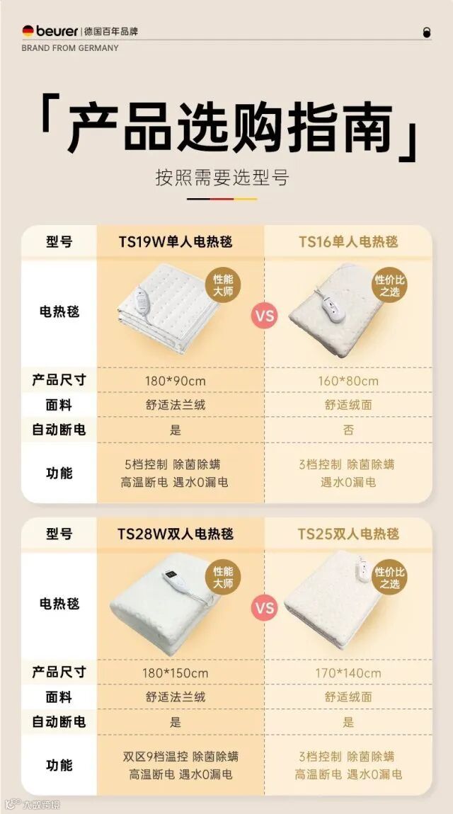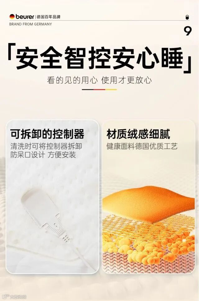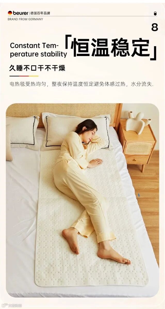 【惊喜20:00 内购补贴】beurer宝雅乐电热毯单人双人可机洗除螨除菌电褥子智能温控