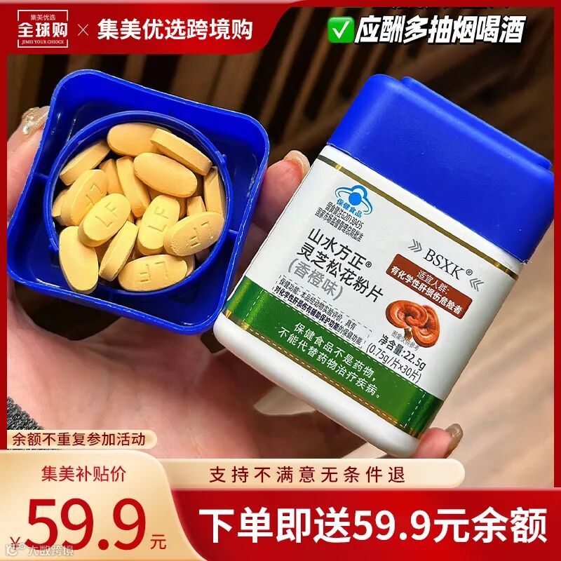 【冲量补贴·满3盒包邮】BSXK·山水方正灵芝松花粉片22.5g/1盒(0.75g/片*30片)