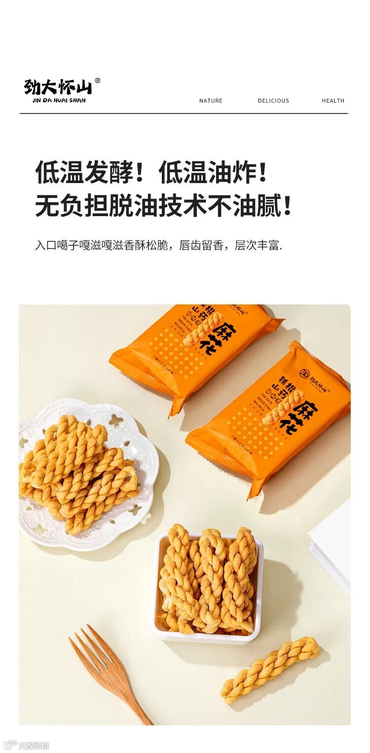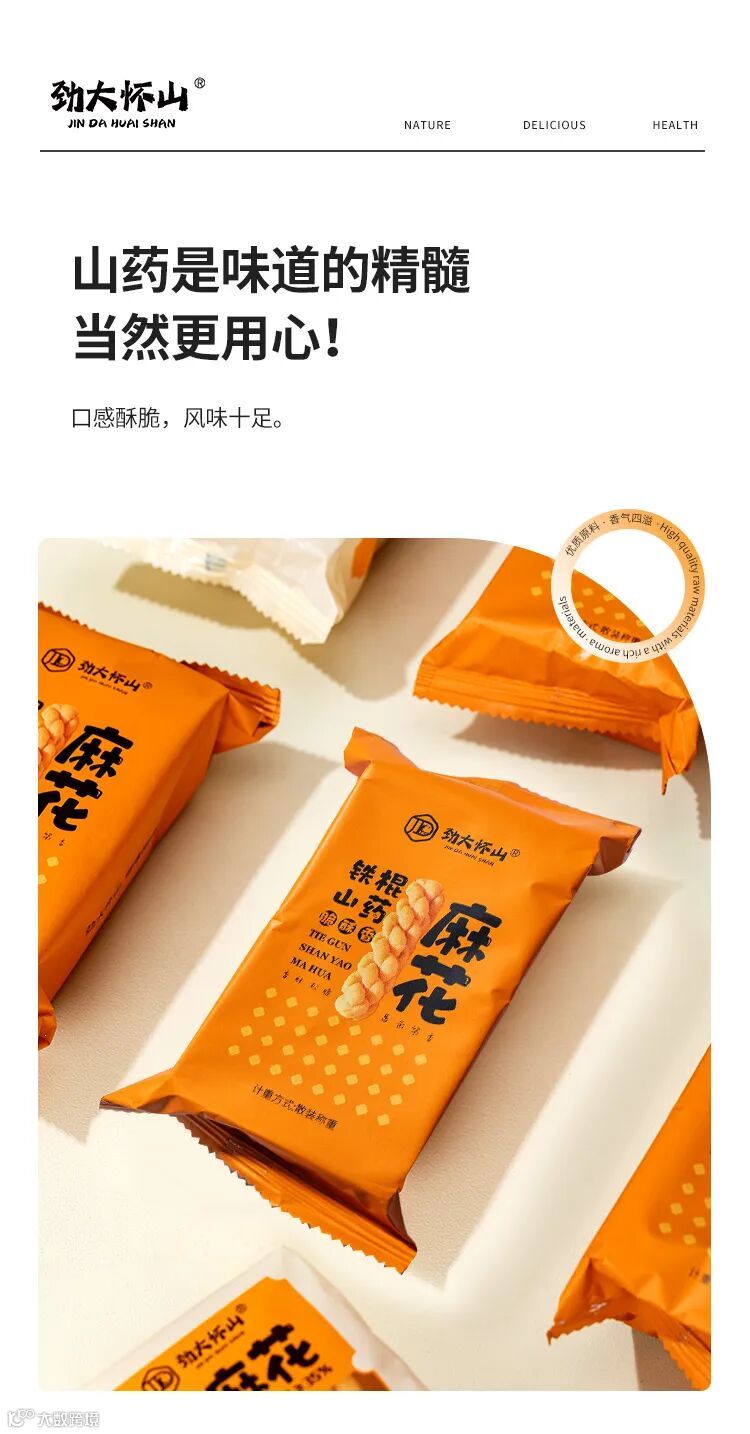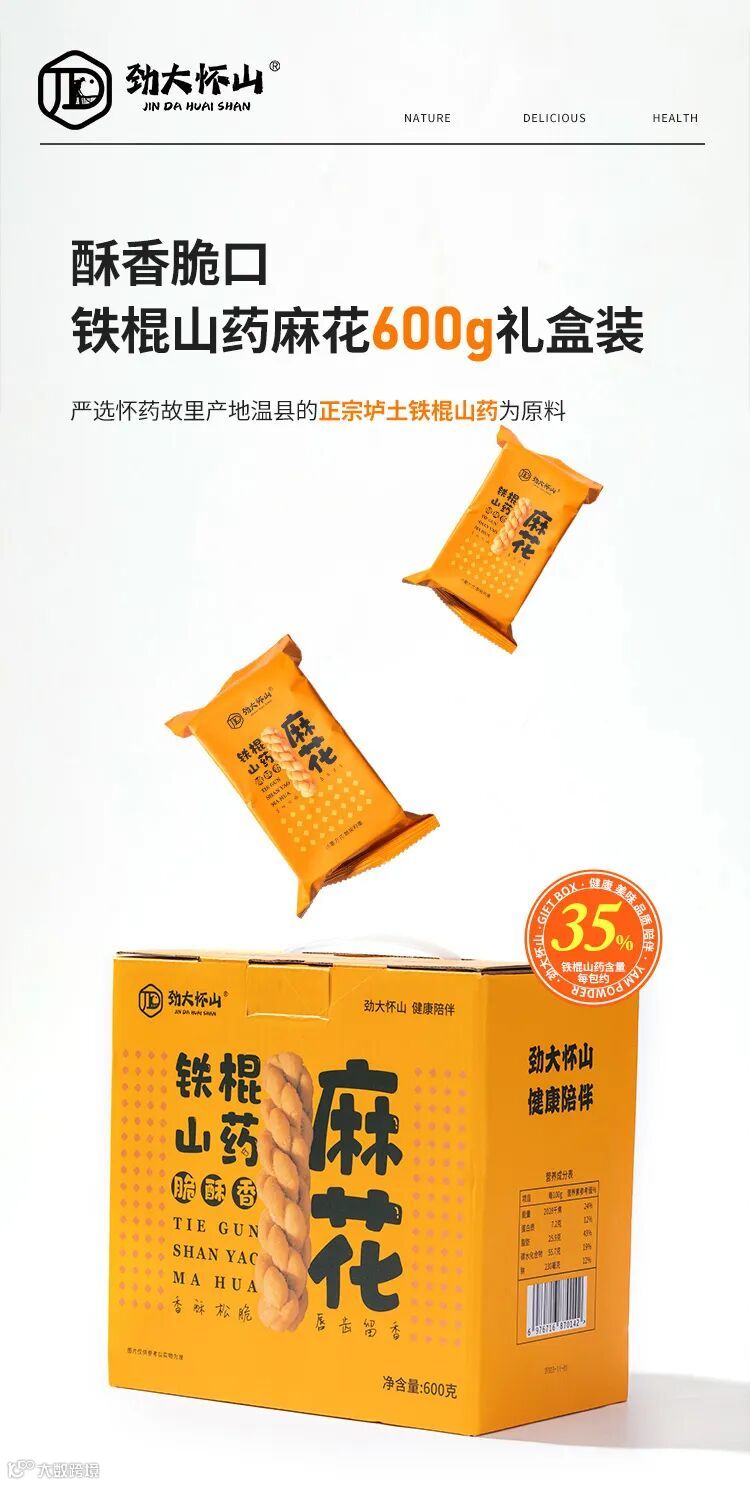 【新品补贴推荐】劲大怀山-铁棍山药麻花600g礼盒装(每箱14包左右)