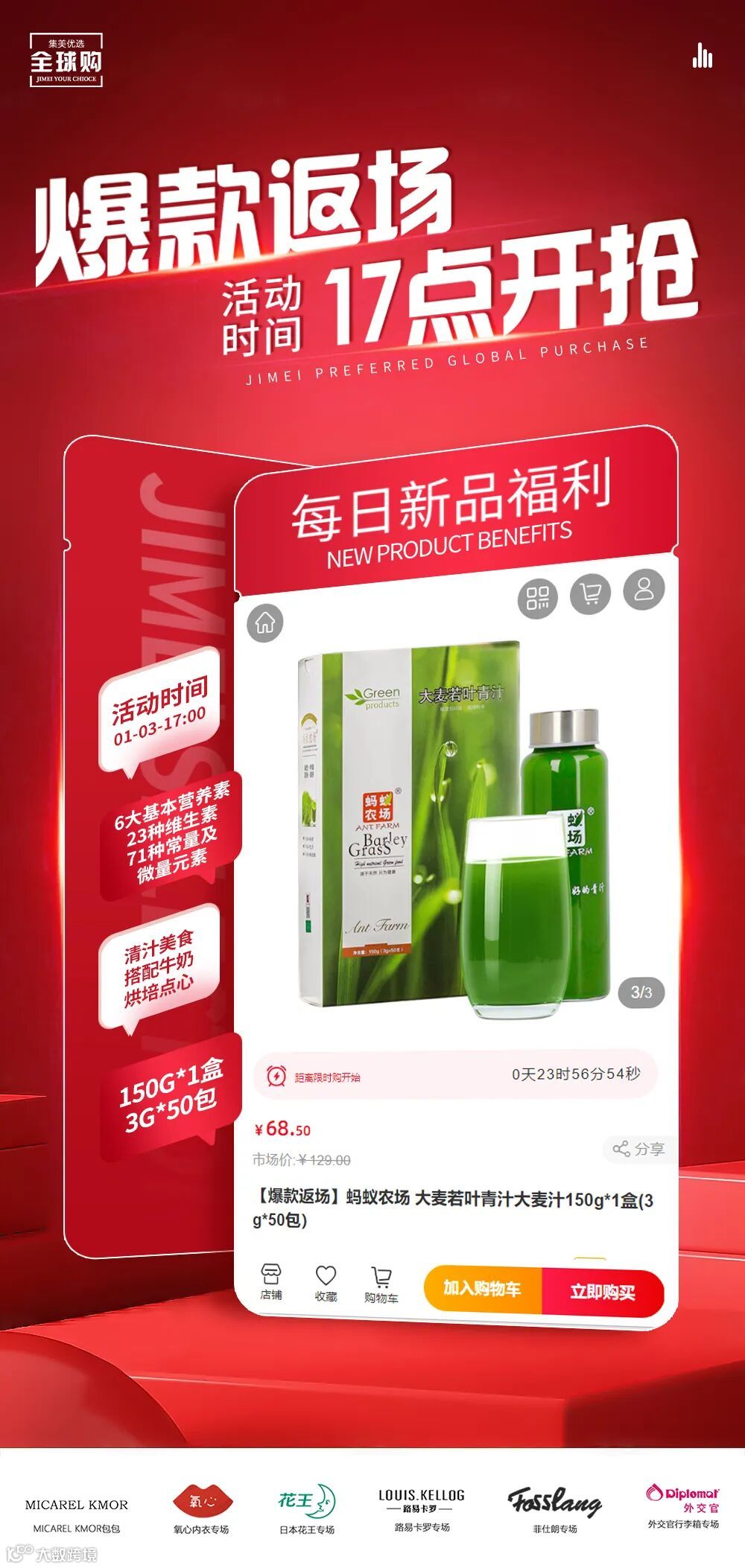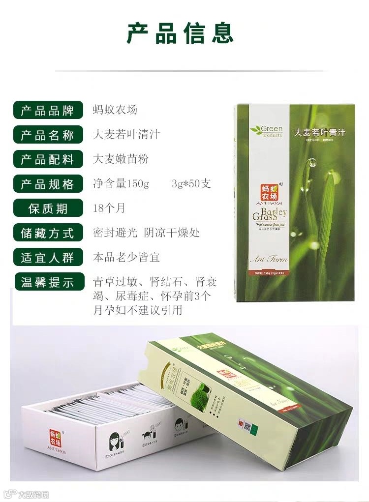 【爆款返场】蚂蚁农场 大麦若叶青汁大麦汁150g*1盒(3g*50包)