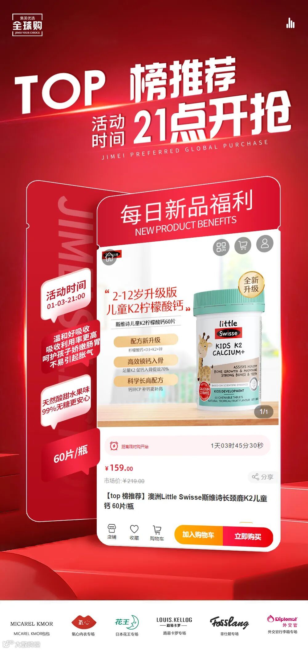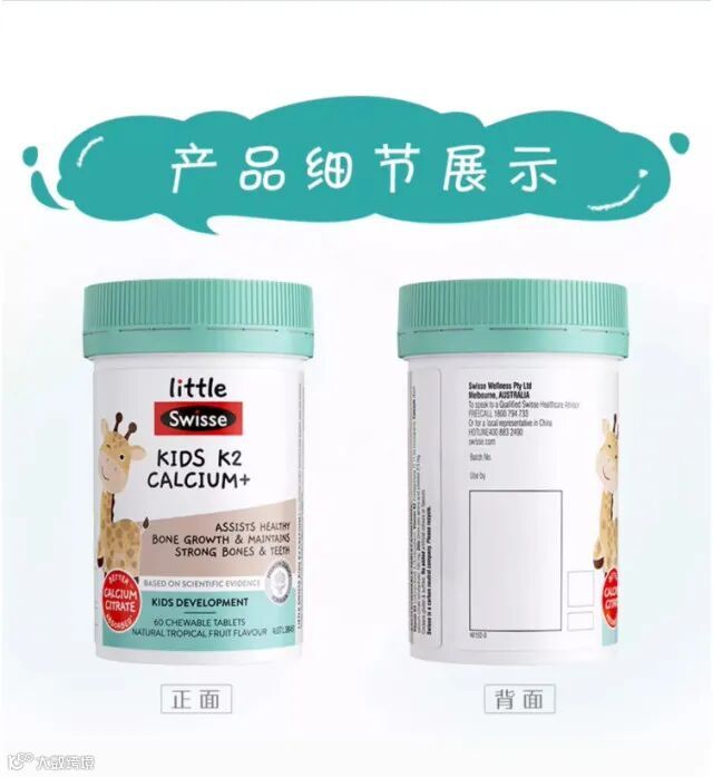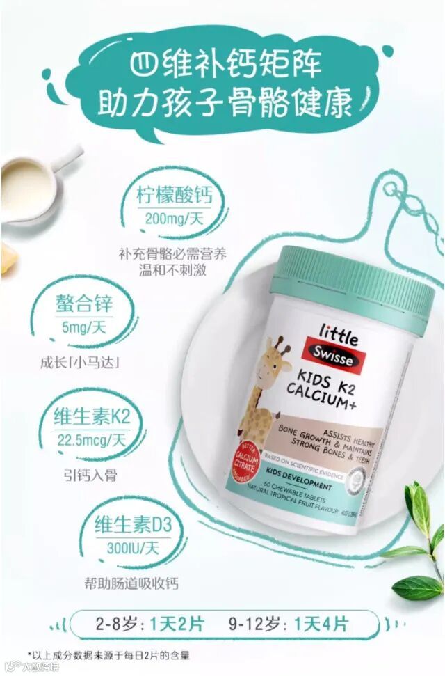【top 榜推荐】澳洲Little Swisse斯维诗长颈鹿K2儿童钙 60片/瓶