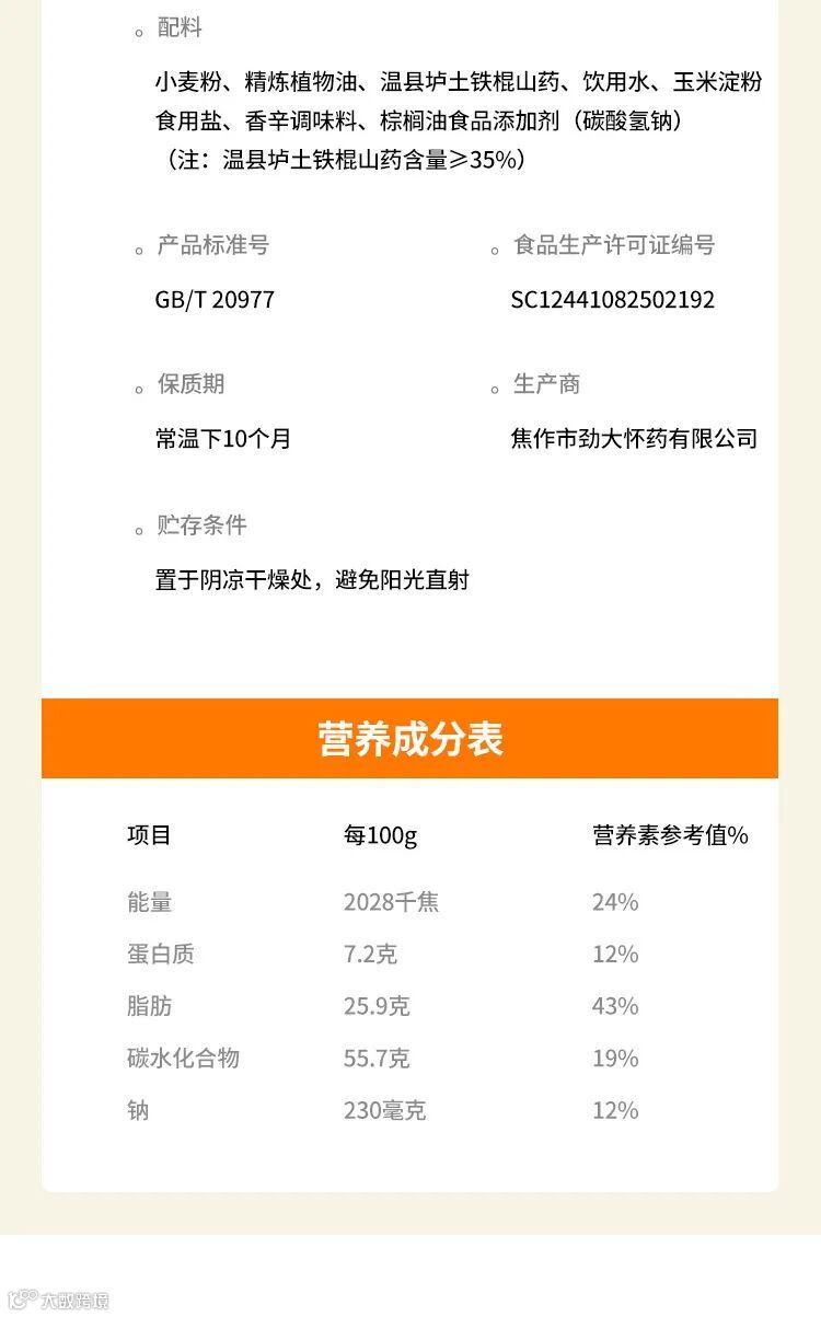 【注意事项】对山药过敏人群谨慎使用(注:温县垆土铁棍山药含量≥35%)