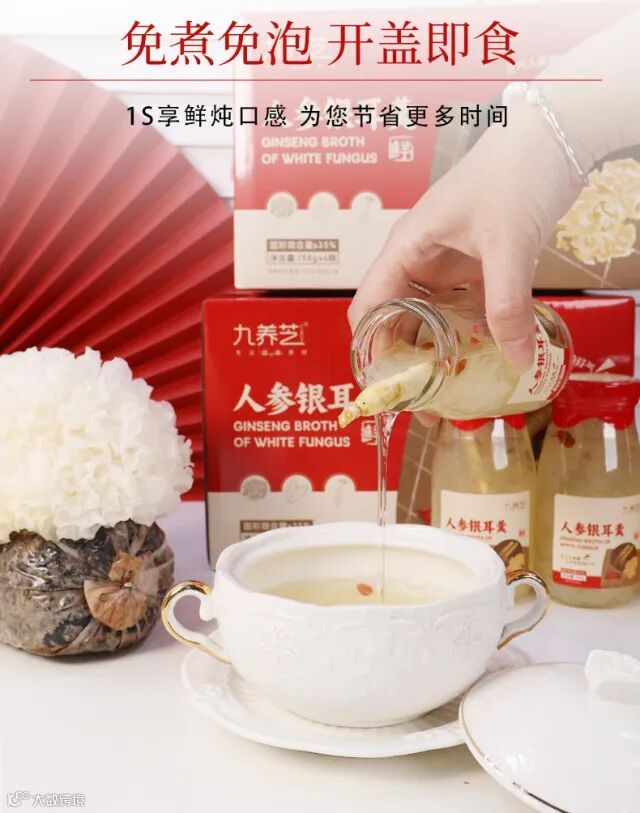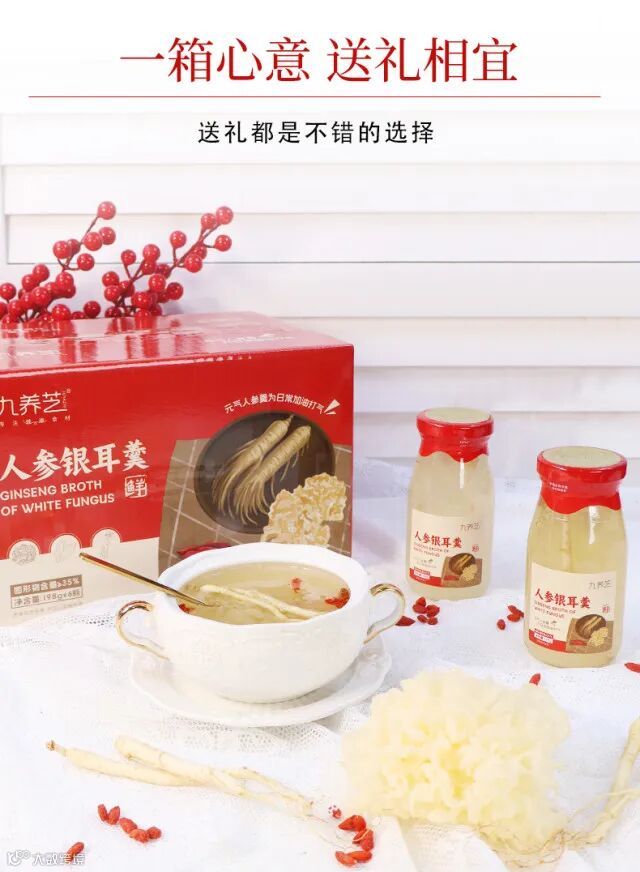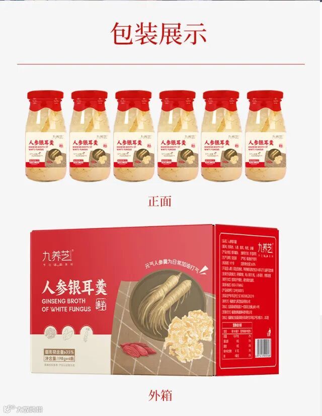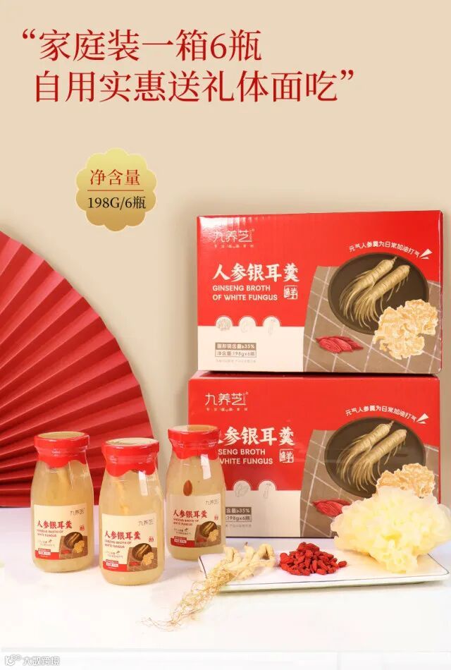 【重磅必入推荐】九养芝人参鲜炖银耳6瓶/12装/箱(每瓶净重198克) 原价:89元 粉丝群补贴价:59元起