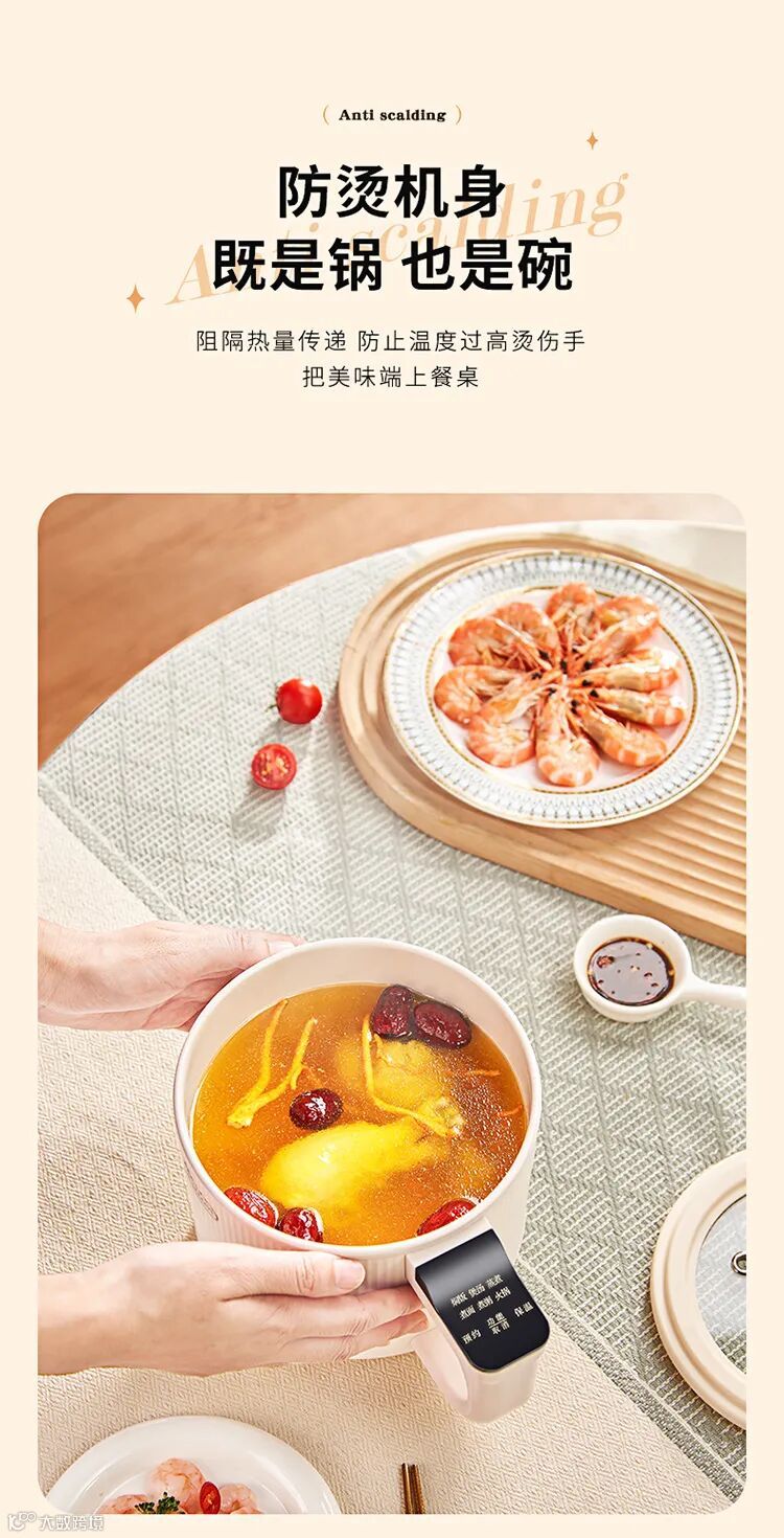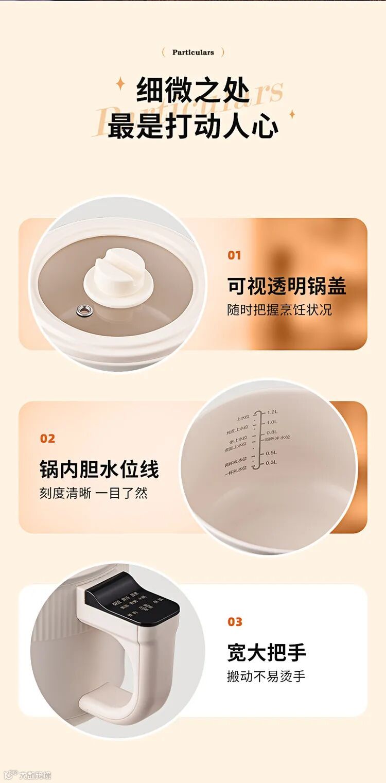◆特点:微电脑智能控制;24小时预约;一锅多用;上蒸下煮;不粘易清洁;人性化开关;