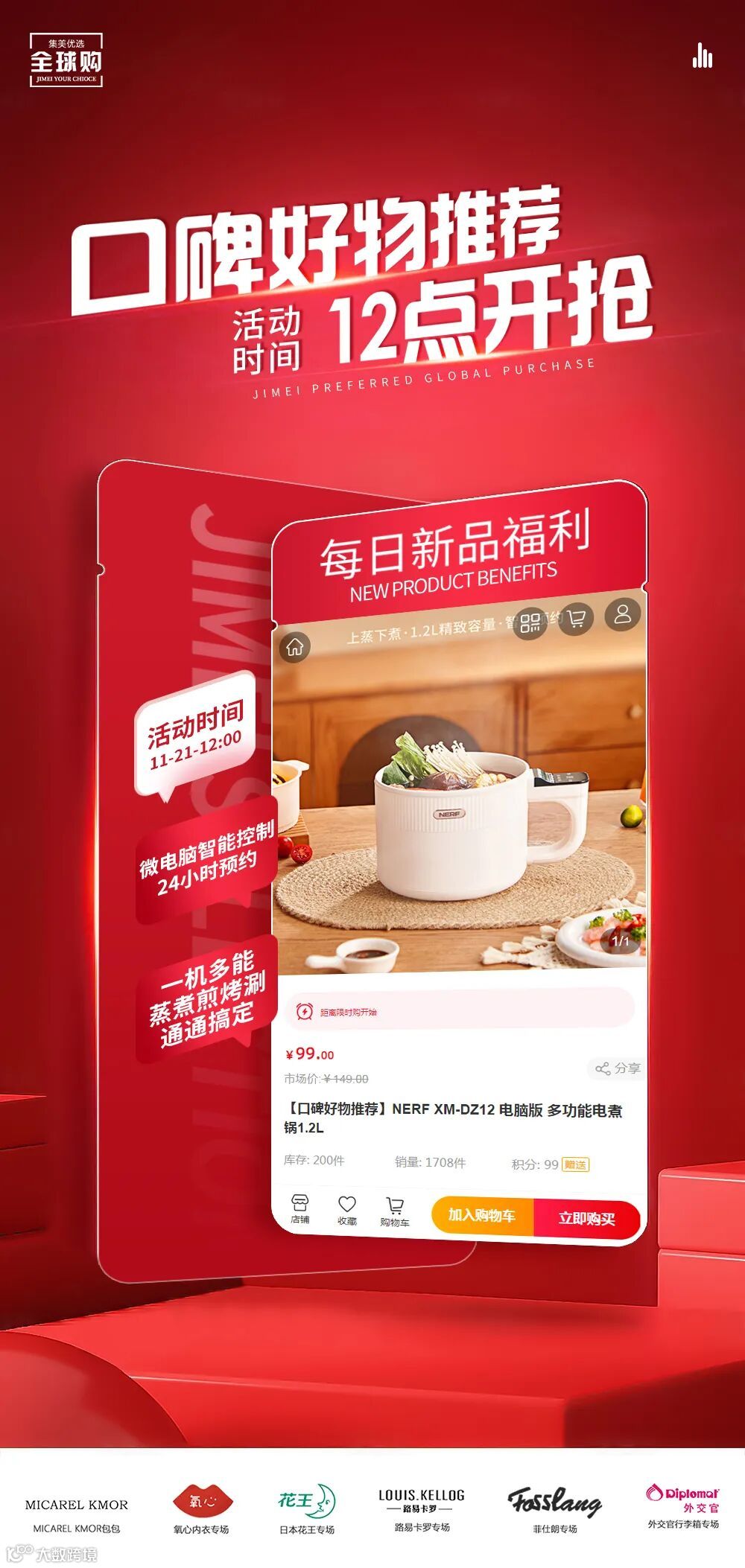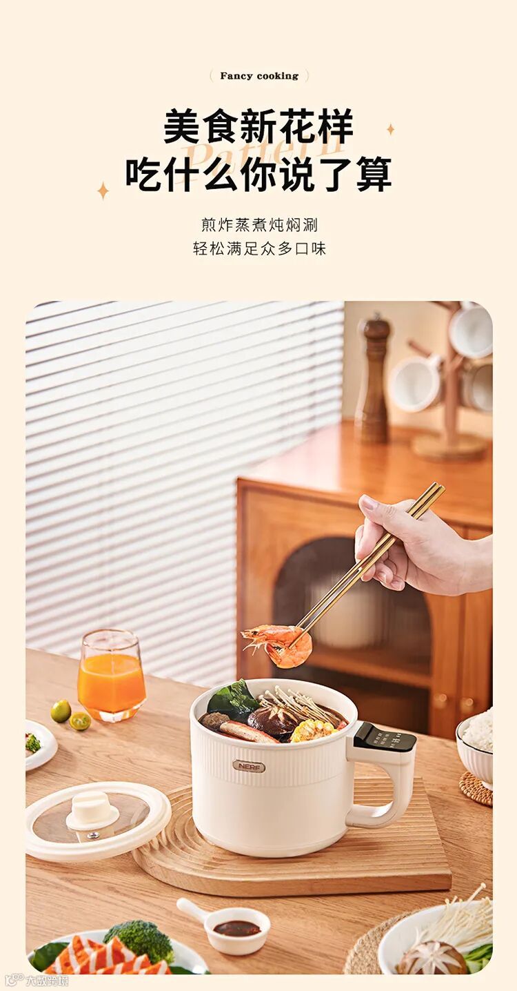 【口碑好物推荐】NERF XM-DZ12 【电脑版】多功能电煮锅1.2L 原价:149元 粉丝群补贴价:99元