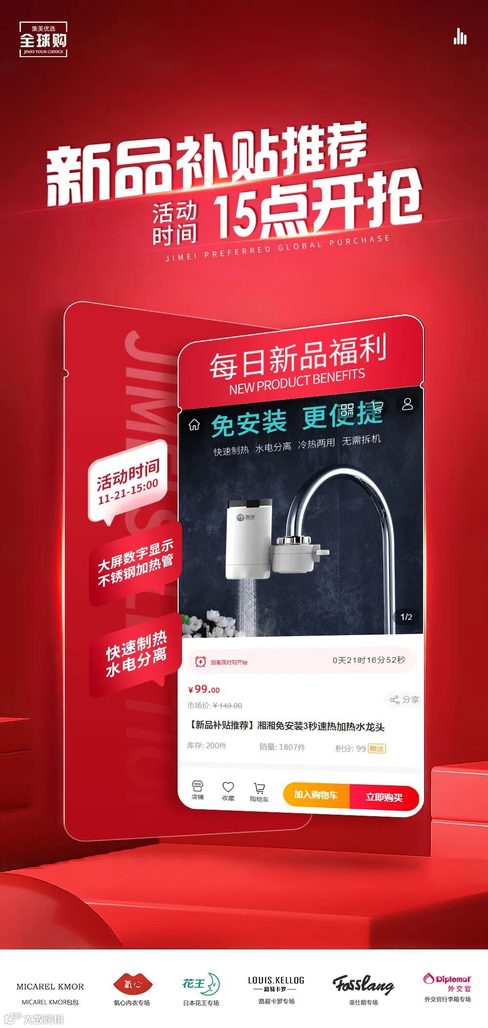 【新品补贴推荐】湘湘免安装3秒速热加热水龙头 原价:149元 粉丝群补贴价:99元