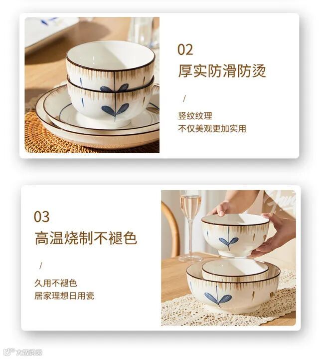 高温烧制,瓷质温润细腻,不易滑,不伤桌
