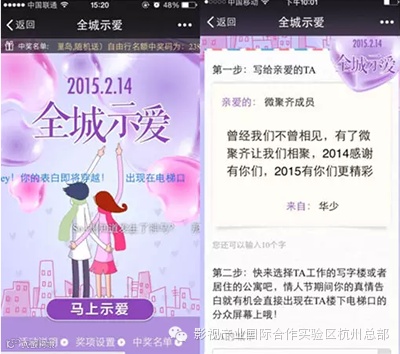 案例:情人节来了,商家还能闲着么?2014年下半年,分众传媒的楼宇电梯广告加入了WiFi热点之后,增加了互通互联互动功能,分众传媒及时抓住移动互联网,而成为了一个LBS(基于位置的服务)的公司,通过楼宇的基于地理位置的广告平台,和移动互联网上的所有客户端可以进行互动。