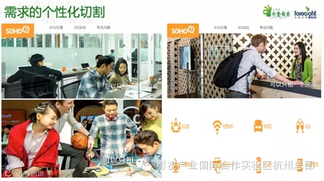 案例:未来的办公室可以只租一个星期、一个月,你可以只租一张办公桌、一间办公室。全部的办公出租都在手机上完成,从手机预约到付款。只需要带上手机和电脑,就可以开始办公。这个场景即将出现在北京和上海的SOHO中国写字楼,SOHO中国董事长潘石屹把这个产品命名为:SOHO3Q。