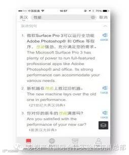 以其最新推出的surface广告为例,除了传统的弹窗和banner,surface原生广告最大特点便是与有道词典双语例句的内容进行了深度结合。用户搜索“性能”一词,有道随即给出内嵌surface的双语例句,将其工具性与商业性完美结合,是原生营销概念的经典诠释。