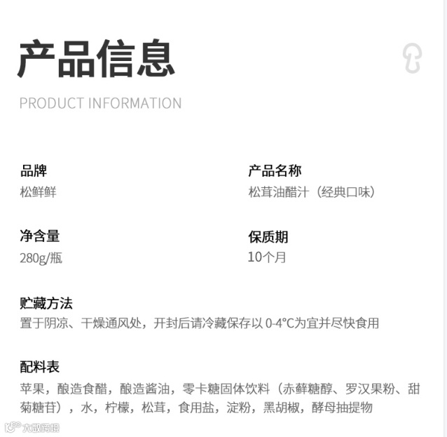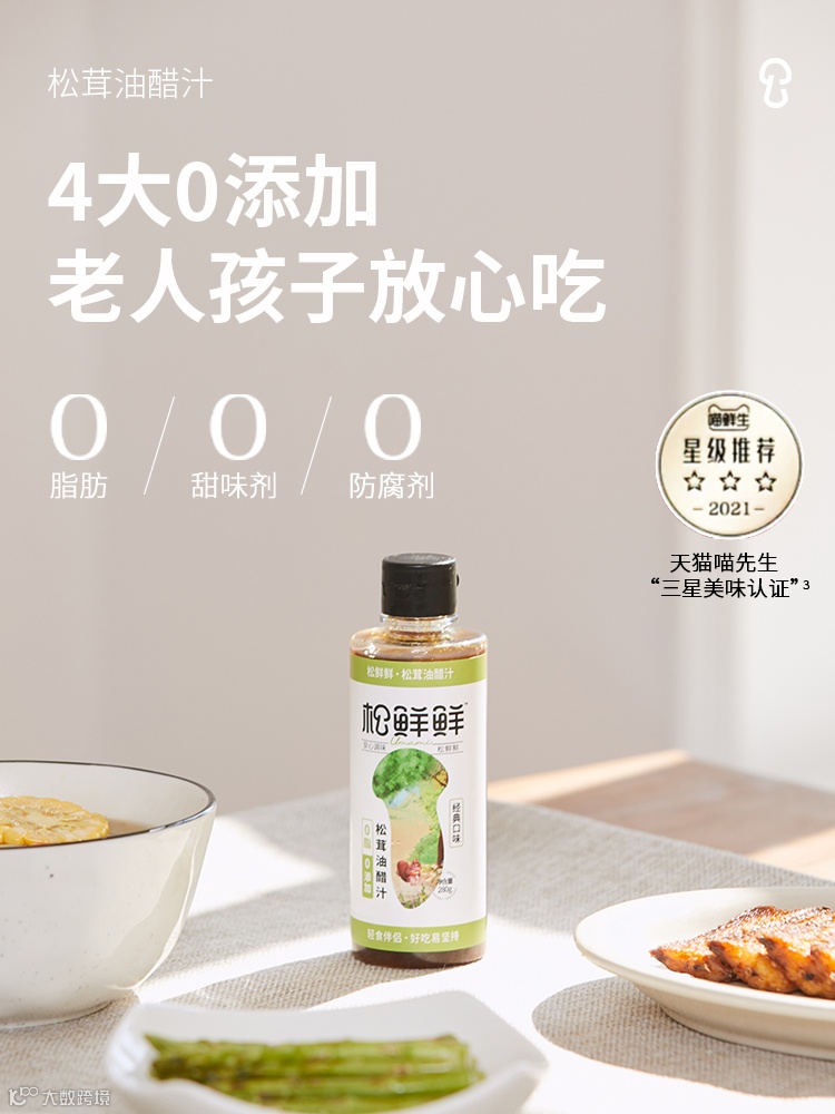 【粉丝群补贴·3瓶包邮】松鲜鲜松茸油醋汁280g/瓶(经典口味) 原价:39元 粉丝群补贴价:19.8元