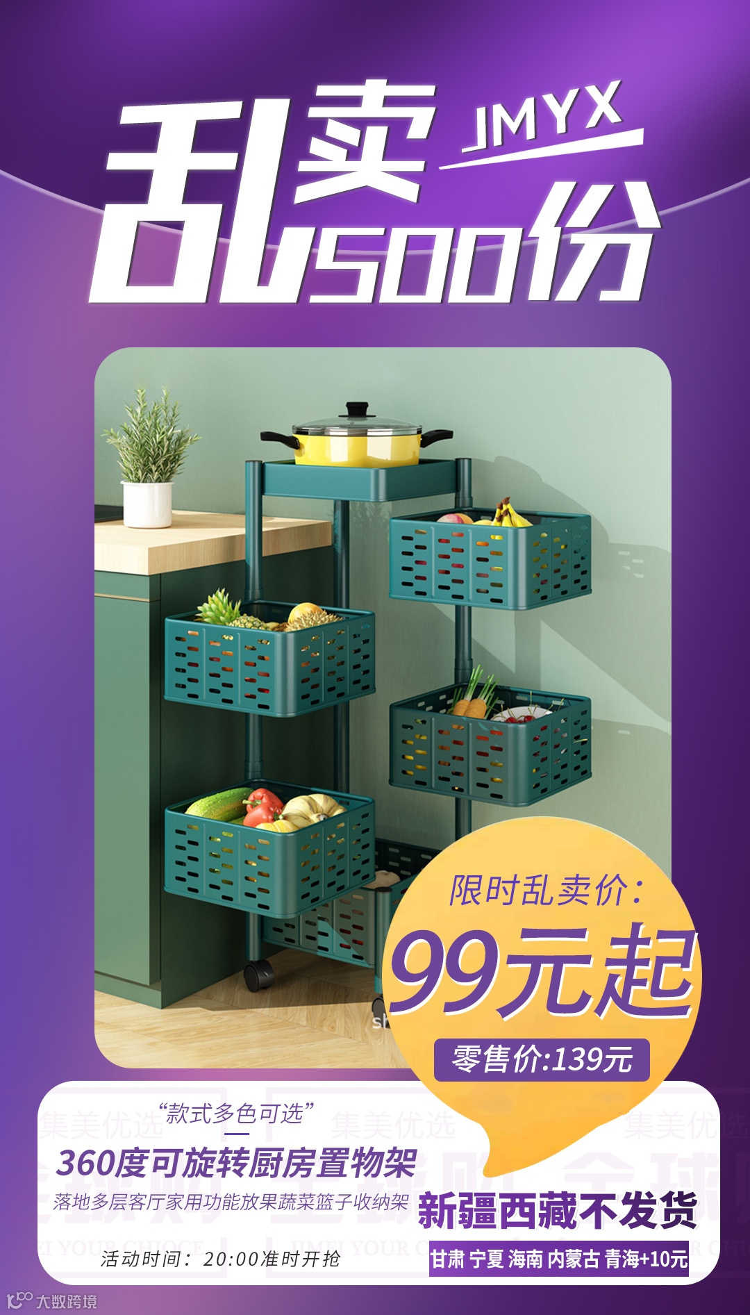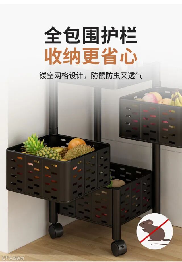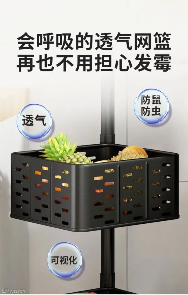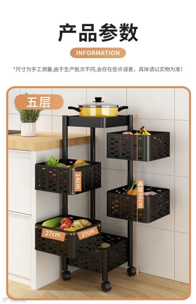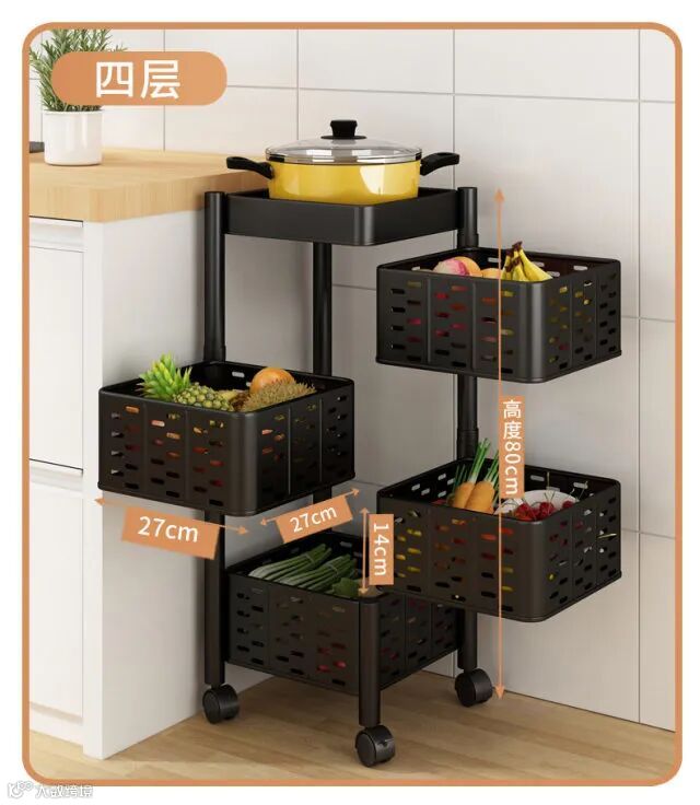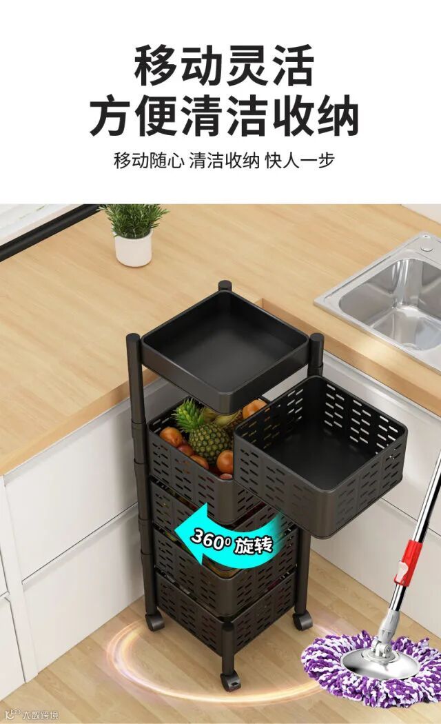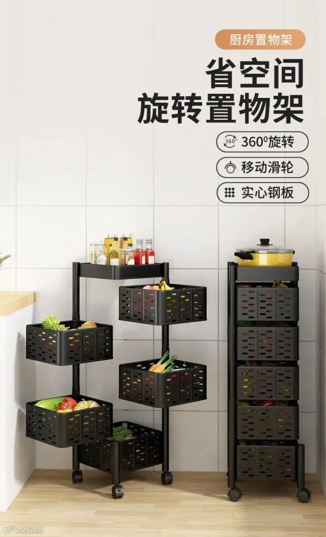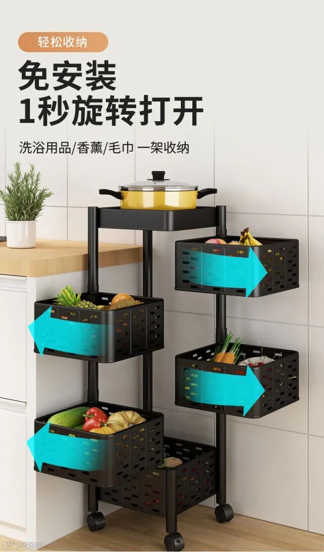 【粉丝群补贴】360度可旋转厨房置物架落地多层客厅家用功能放果蔬菜篮子收纳架 原价:139元 粉丝群补贴价:99元起