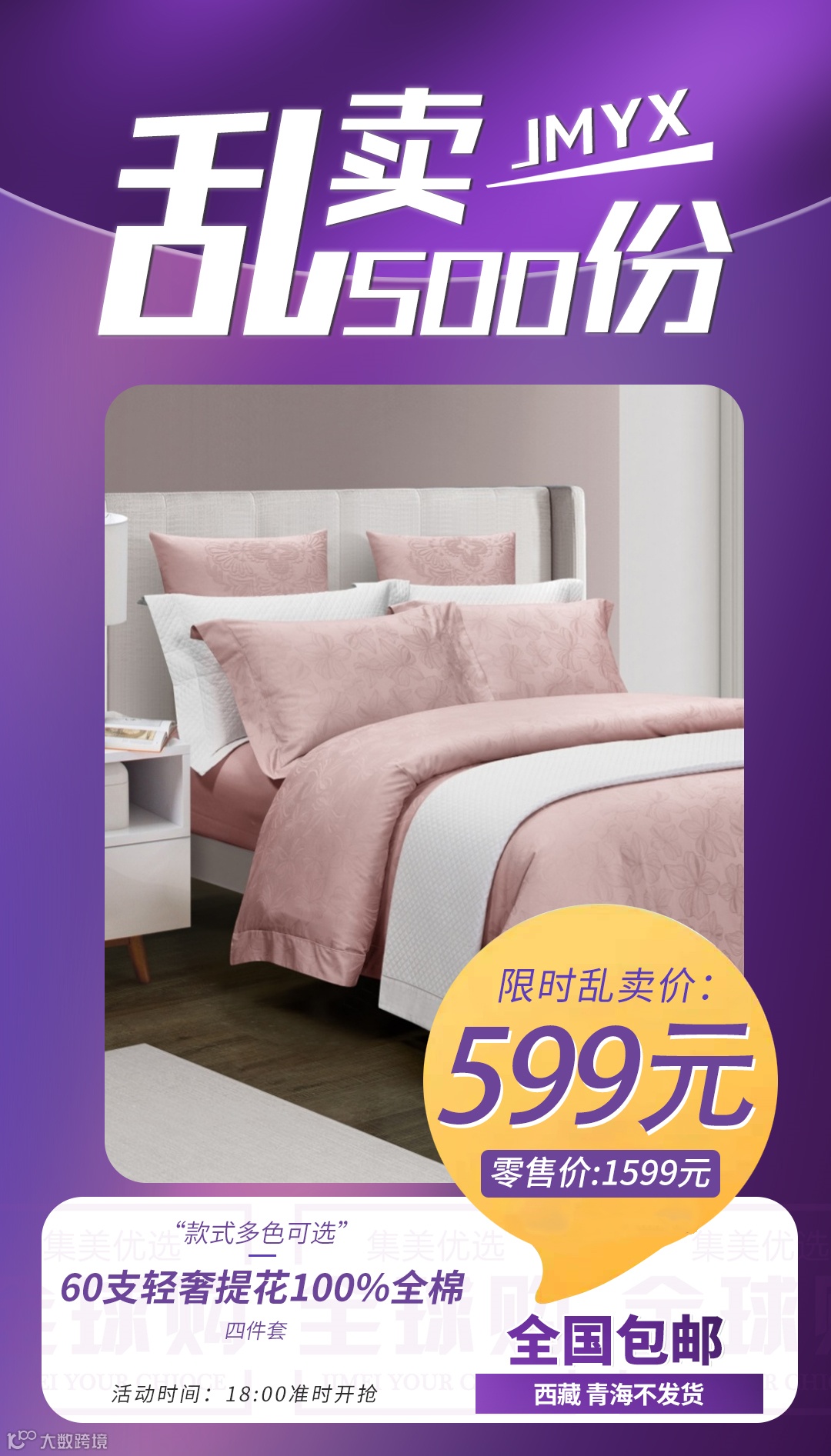 【粉丝群补贴】60支轻奢提花100%全棉四件套 原价:1599元 粉丝群补贴价:599元