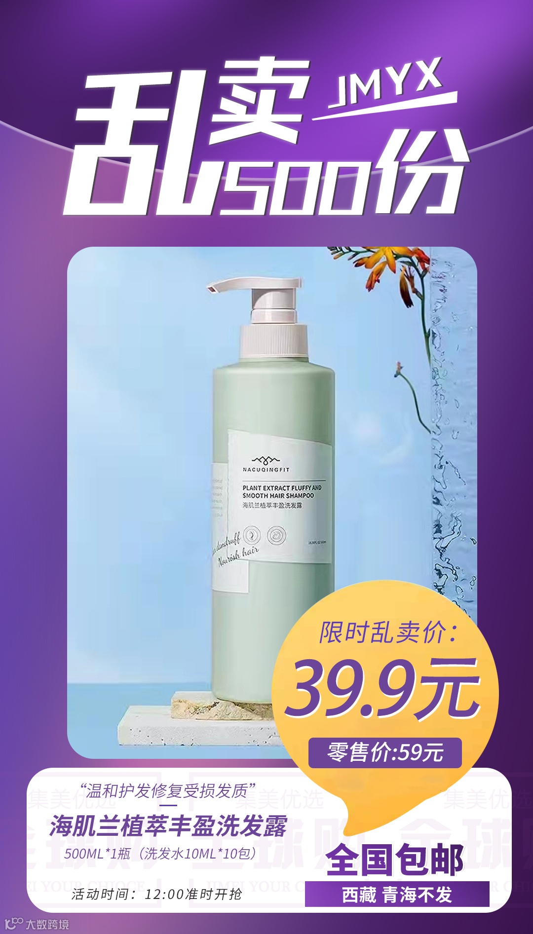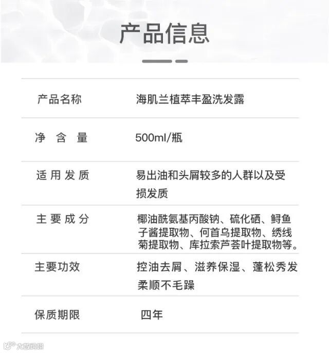 【粉丝群补贴】海肌兰植萃丰盈洗发露500ml*1瓶(洗发水10ml*10包) 原价:59元 粉丝群补贴价:39.9元