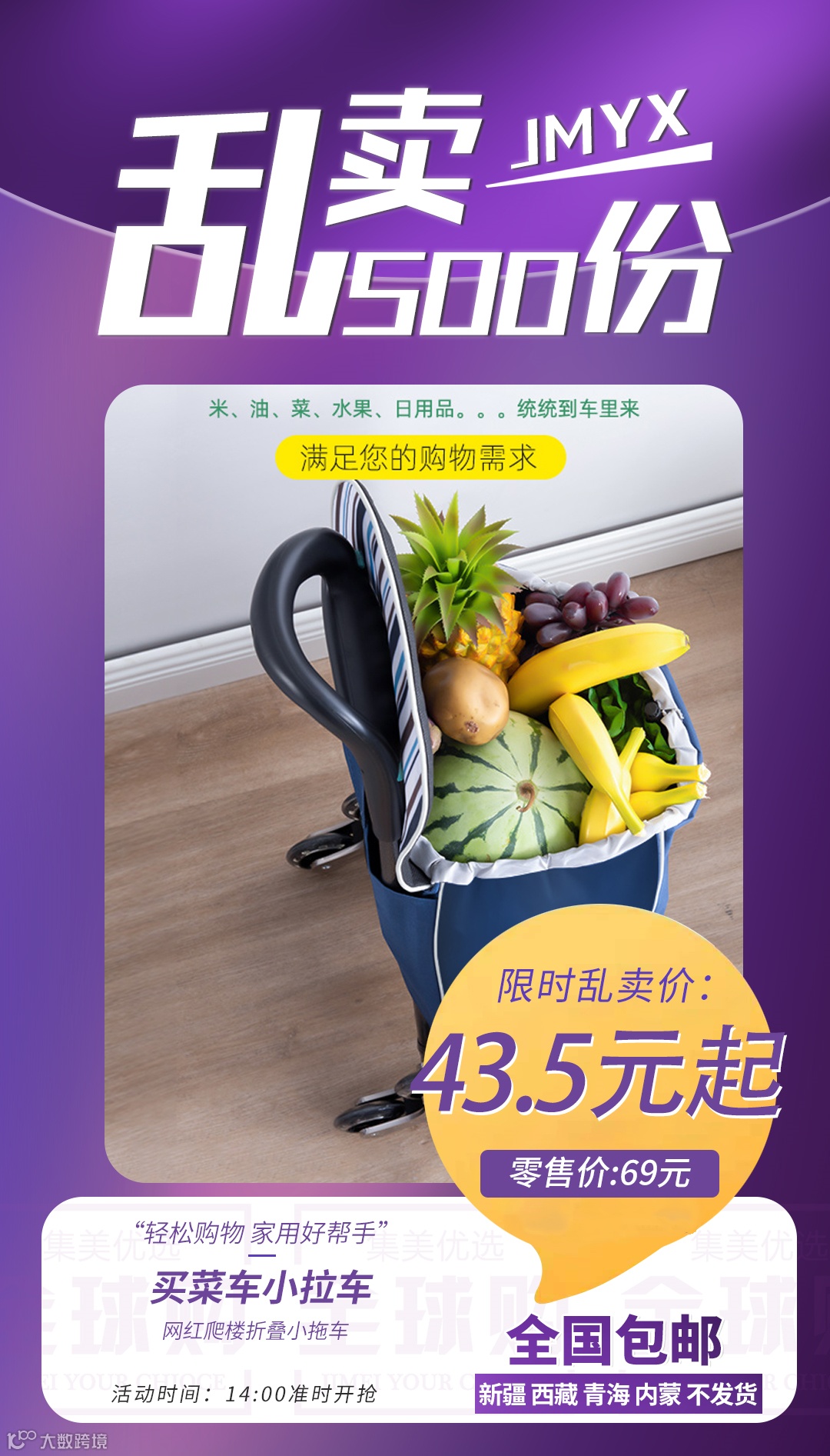 【粉丝群补贴】买菜车小拉车网红爬楼折叠小拖车 原价:69元 粉丝群补贴价:43.5元起