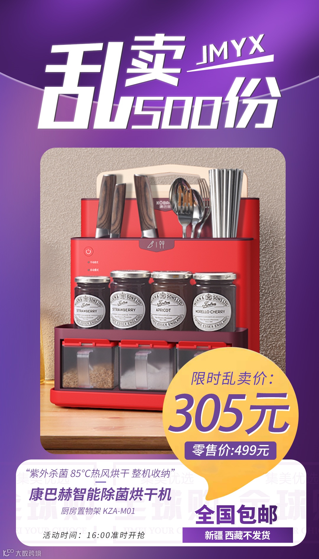 【粉丝群补贴】康巴赫智能除菌烘干机 原价:499元 粉丝群补贴价:305元