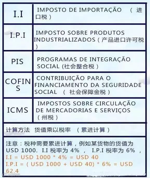 4.税种(税率根据货物的NCM NO.(海关编码)查询 )。