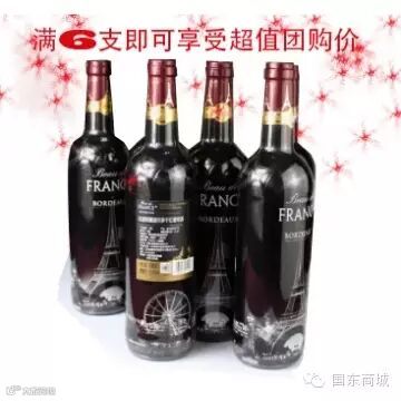 国东商城.法国进口红酒、荣耀波尔多干型、赤霞珠葡萄酒