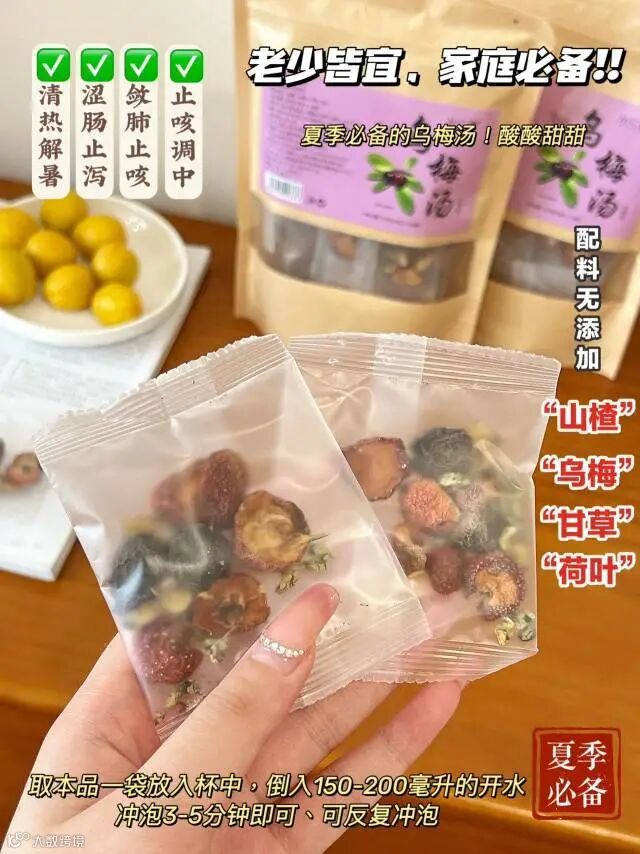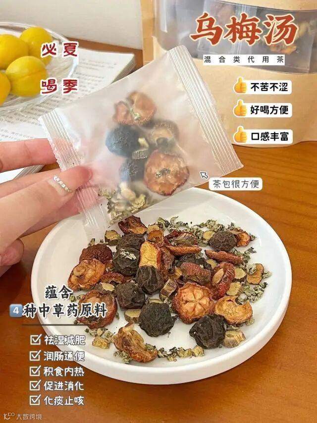 共有四种中草药成分:乌梅、甘草、荷叶、山楂