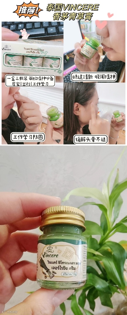 【粉丝群补贴】泰国VINCERE香茅青草膏 3瓶/盒 原价:89元 粉丝群补贴价:39.9元