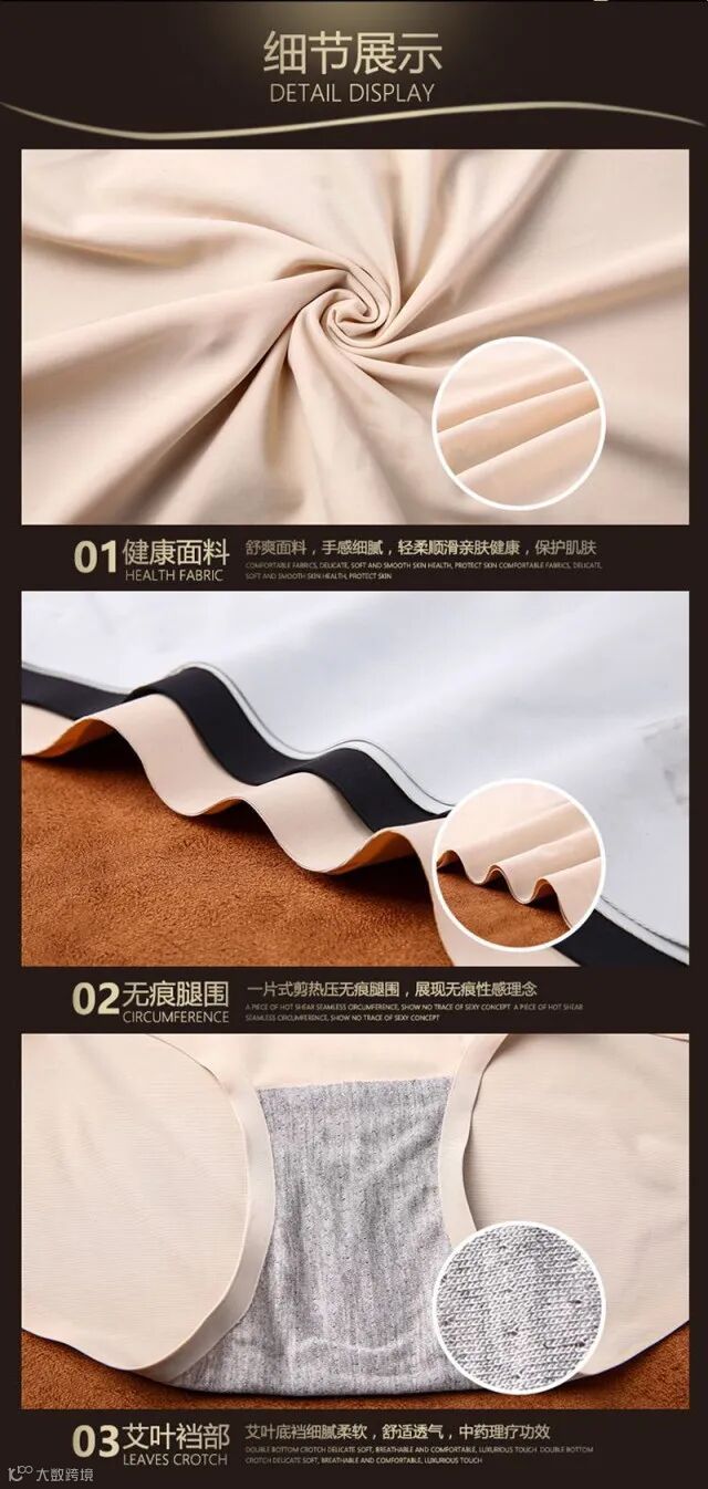 艾草纤维,AAA级抑菌,高达99%的抑菌率,采用台湾专利技术,将艾叶与竹炭纤维混纺,制作成艾叶底裆。裆部越搓越香,并且洗涤晒干后香味仍不消散。真正的竹炭艾叶底裆,上面有无数气孔,进行透气,吸湿排汗,拒绝闷热。穿上后通过人体热量和运动,持续作用,进行抗菌抑菌,暖宫驱寒。对女性宫寒,痛经,月经不调有辅助疗效。