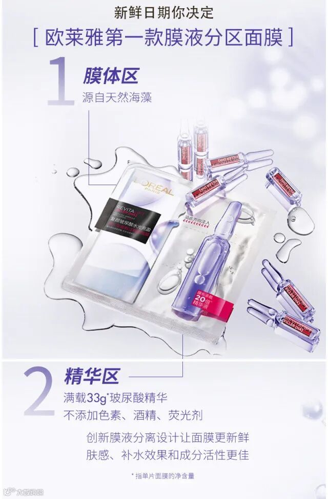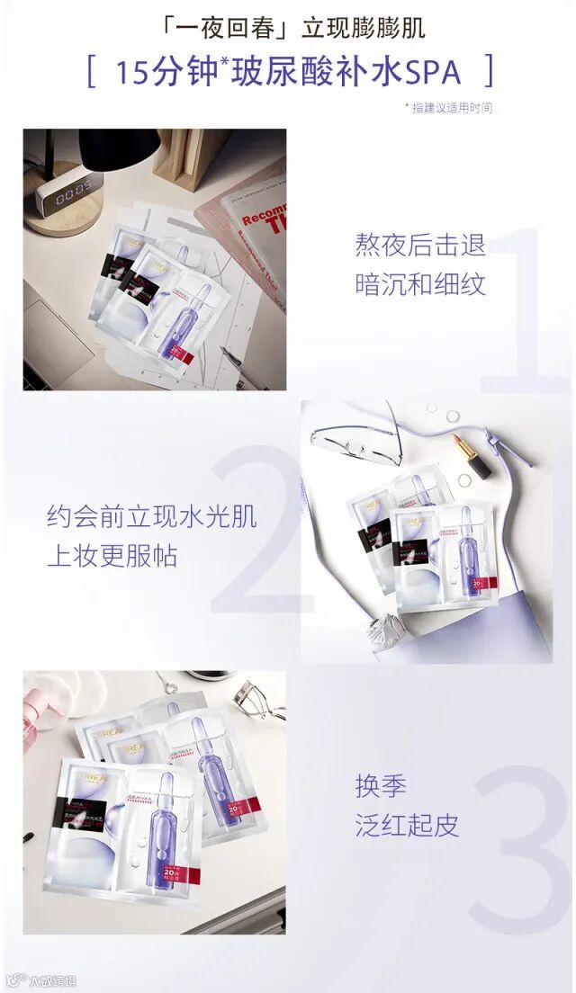 【粉丝群补贴】L;OREAL欧莱雅玻尿酸安瓶面膜5片/盒 原价:109元 粉丝群补贴价:89元起