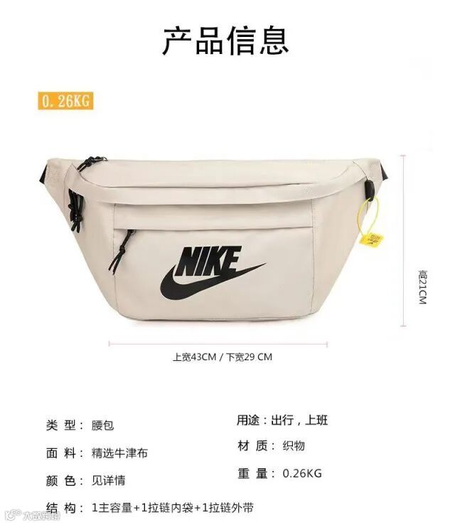 【粉丝群补贴】Nike耐克大logo经典款邮差包单肩斜挎包腰包5751# 原价:159元 粉丝群补贴价:99元