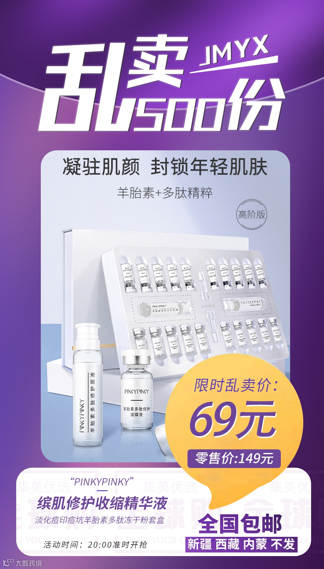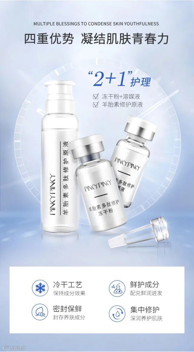 【粉丝群补贴】pinkypinky/缤肌修护收缩精华液淡化痘印痘坑羊胎素多肽冻干粉套盒 原价:149元 粉丝群补贴价:69元