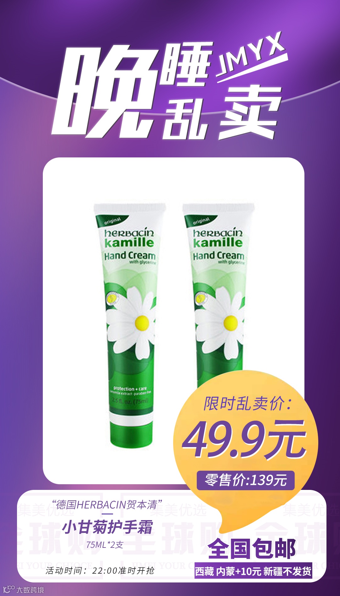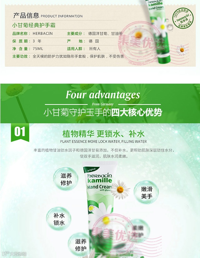 【粉丝群补贴】德国Herbacin贺本清 小甘菊护手霜 75ml*2支 原价:139元 粉丝群补贴价:49.9元