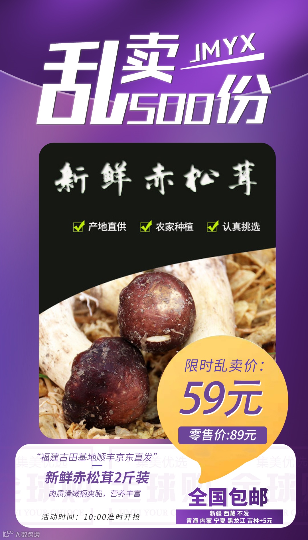 【粉丝群补贴】新鲜赤松茸2斤装 福建古田基地顺丰京东直发 原价:89元 粉丝群补贴价:59元