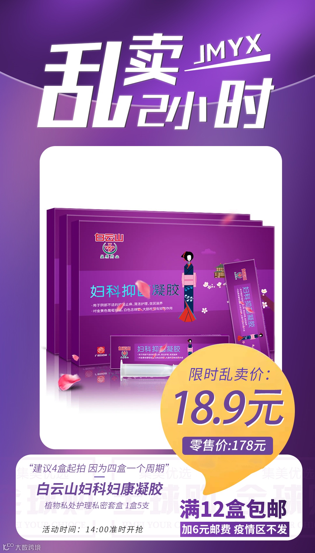 【粉丝群补贴·满12盒包邮】白云山妇科妇康凝胶植物私处护理私密套盒 1盒5支(建议4盒起拍 因为四盒一个周期) 原价:178元 粉丝群补贴价:18.9元