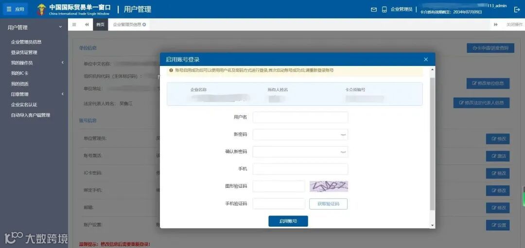 电子口岸IC卡(USBkey)账号激活/查询:登录国际贸易“单一窗口”,进入用户管理系统,找到未激活的账号,点击“激活”。
