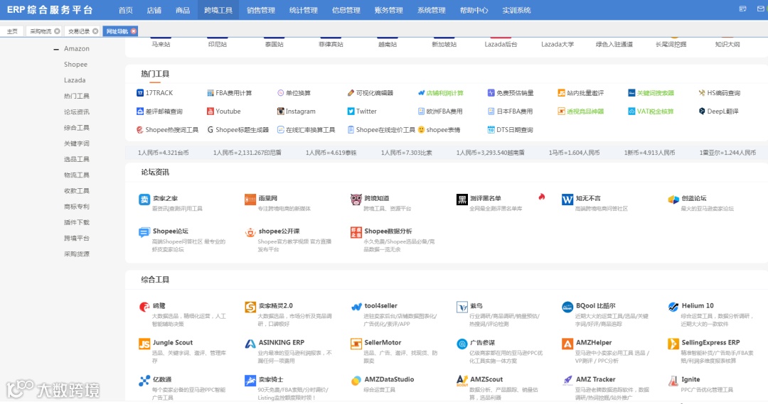 平台集成各种跨境工具