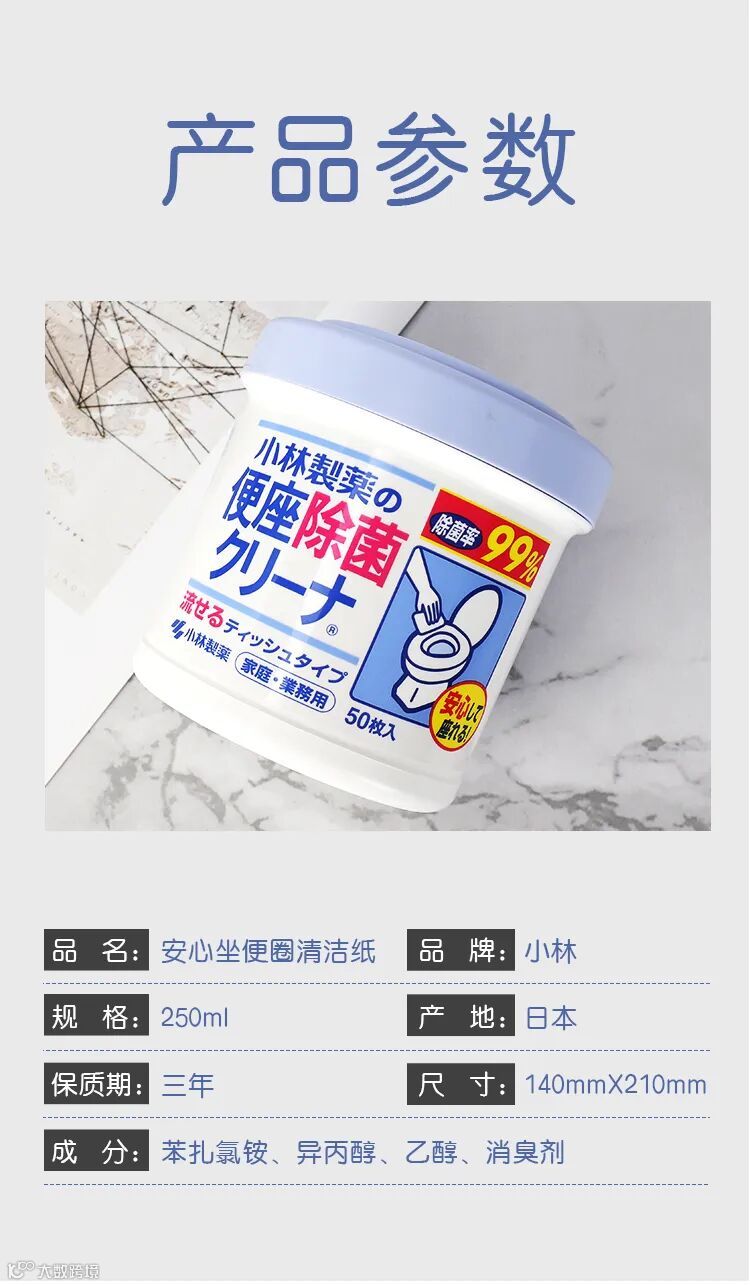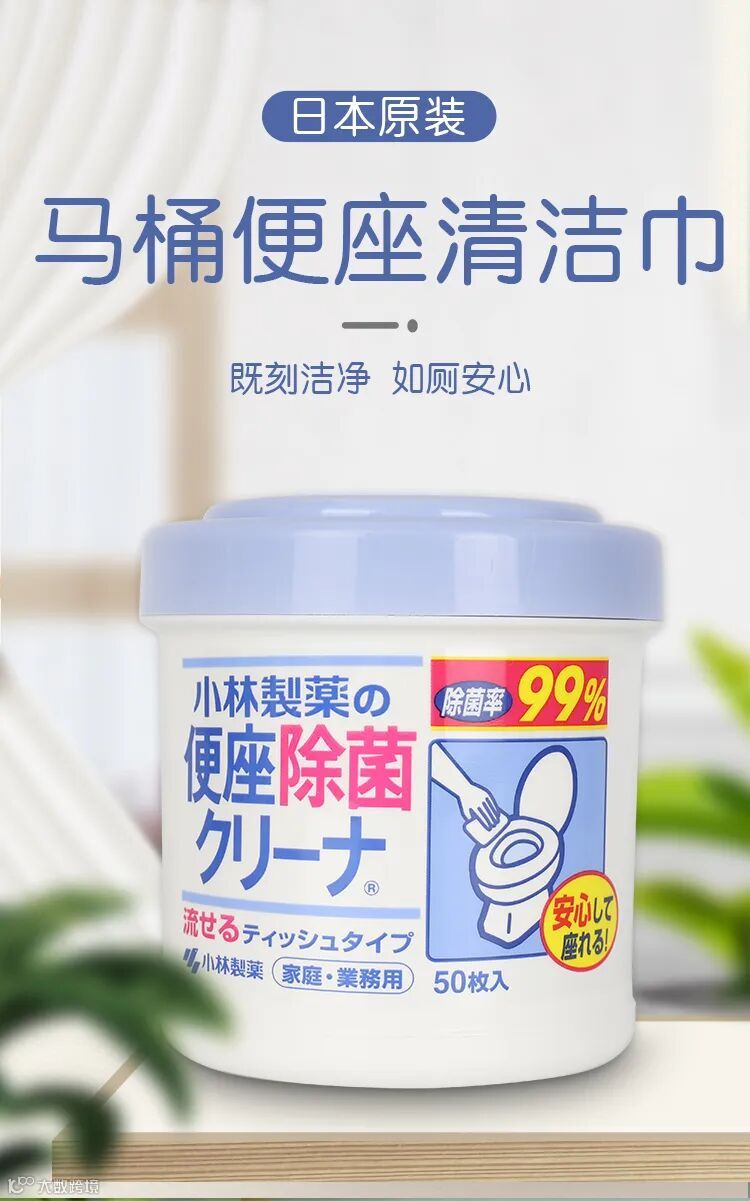 【粉丝群补贴】日本小林制药马桶便座圈99%消毒杀菌50枚(买2送替换装) 原价:79元 粉丝群补贴价:49.9元