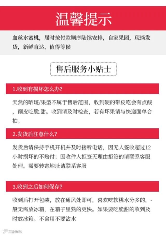 ❶品相问题不售后。(如有些桃子表皮会有褐斑,晒斑,果蒂会脱落等)