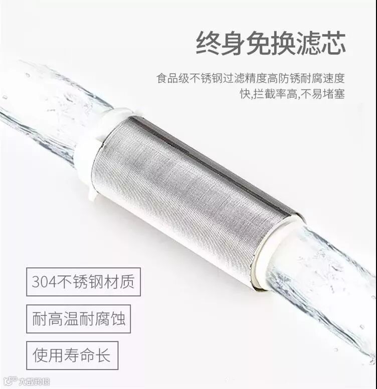 滤网材质为食品级304不锈钢,不易生锈,滤芯采用POM骨架式结构,抗变形能力更强。