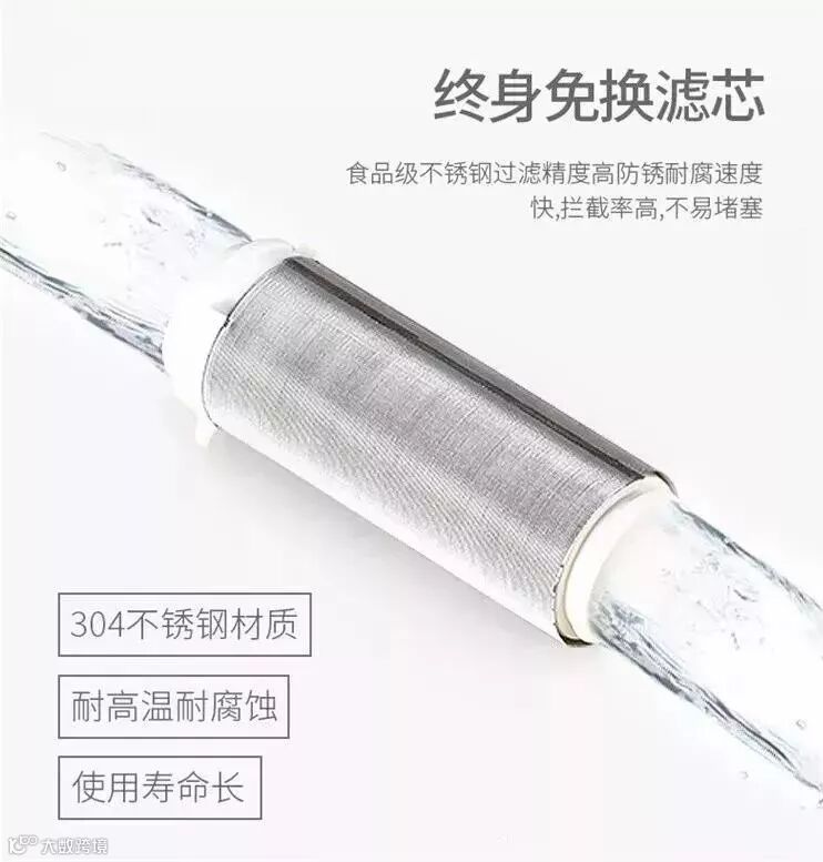 滤网材质为食品级304不锈钢,不易生锈,滤芯采用POM骨架式结构,抗变形能力更强。