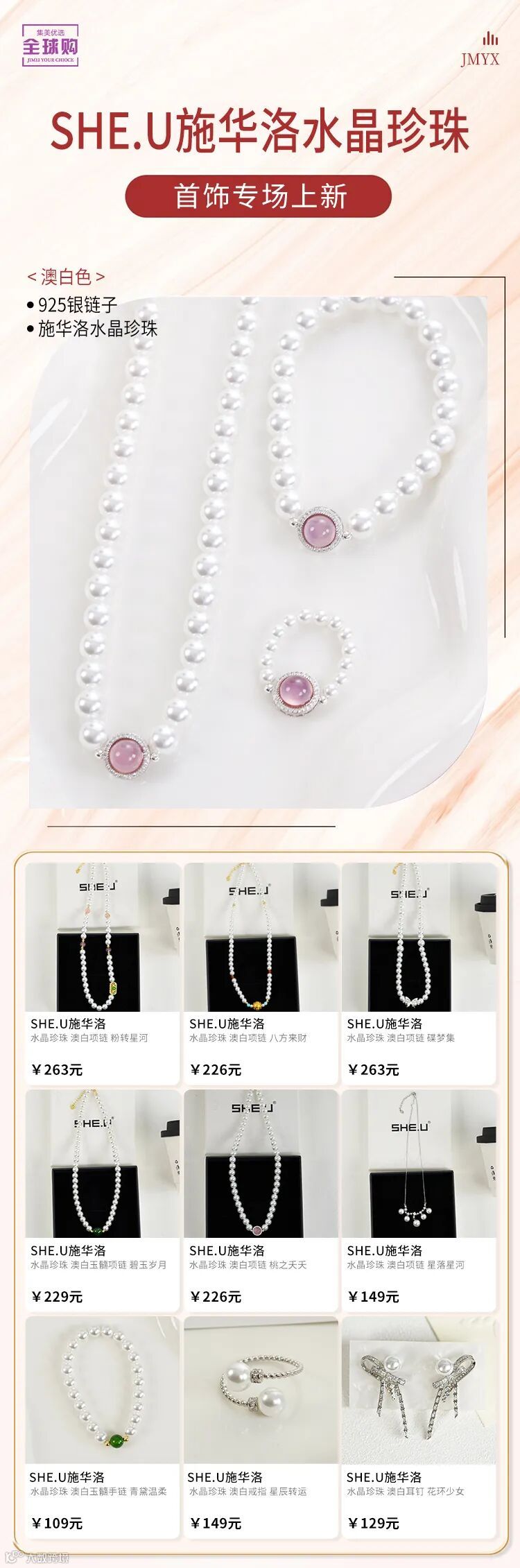 【爆款推荐】夏日限定 SHE.U施华洛水晶珍珠 澳白项链 HFL885118