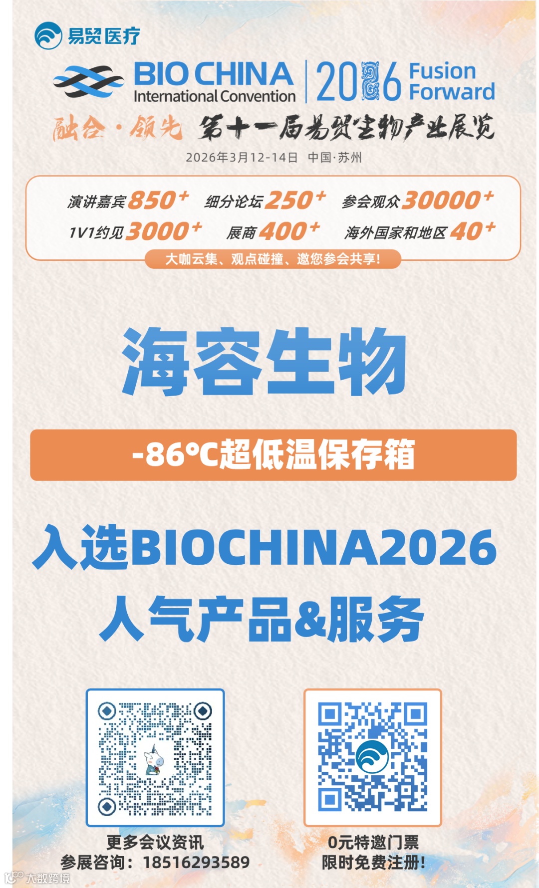 近日,在备受业界瞩目的 “BIOCHINA生物节” 的产品竞选活动中,海容生物医疗自主研发的-86℃超低温冰箱DW-86L585MG荣获 BIOCHINA 2026 “人气产品奖”。这一殊荣不仅是对产品卓越性能的认可,更是对海容在生命科学领域持续创新的肯定。
