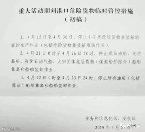 1.4月15日至4月30日,停止1-7类危险货物集装箱的装卸生产作业(包括危险货物集装箱堆场作业)。