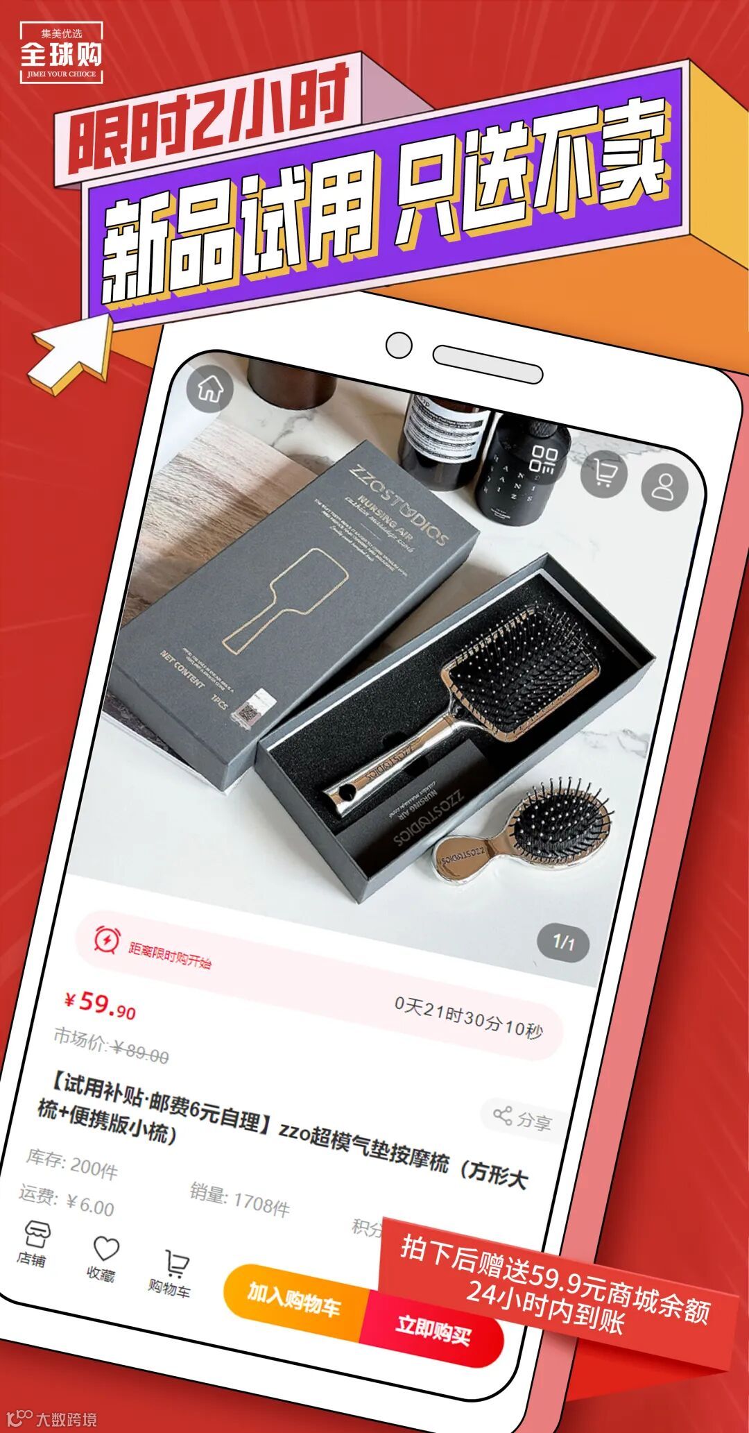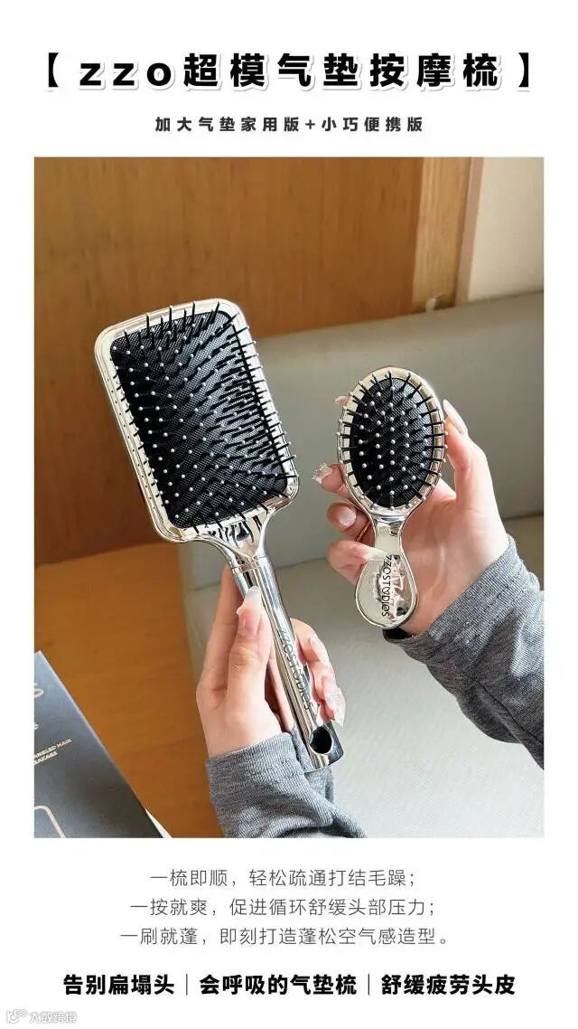 【试用补贴·邮费6元自理】zzo超模气垫按摩梳(方形大梳+便携版小梳)