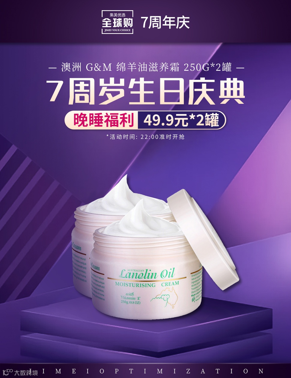 【晚睡福利】澳洲 G&M 绵羊油滋养霜 250g*2罐