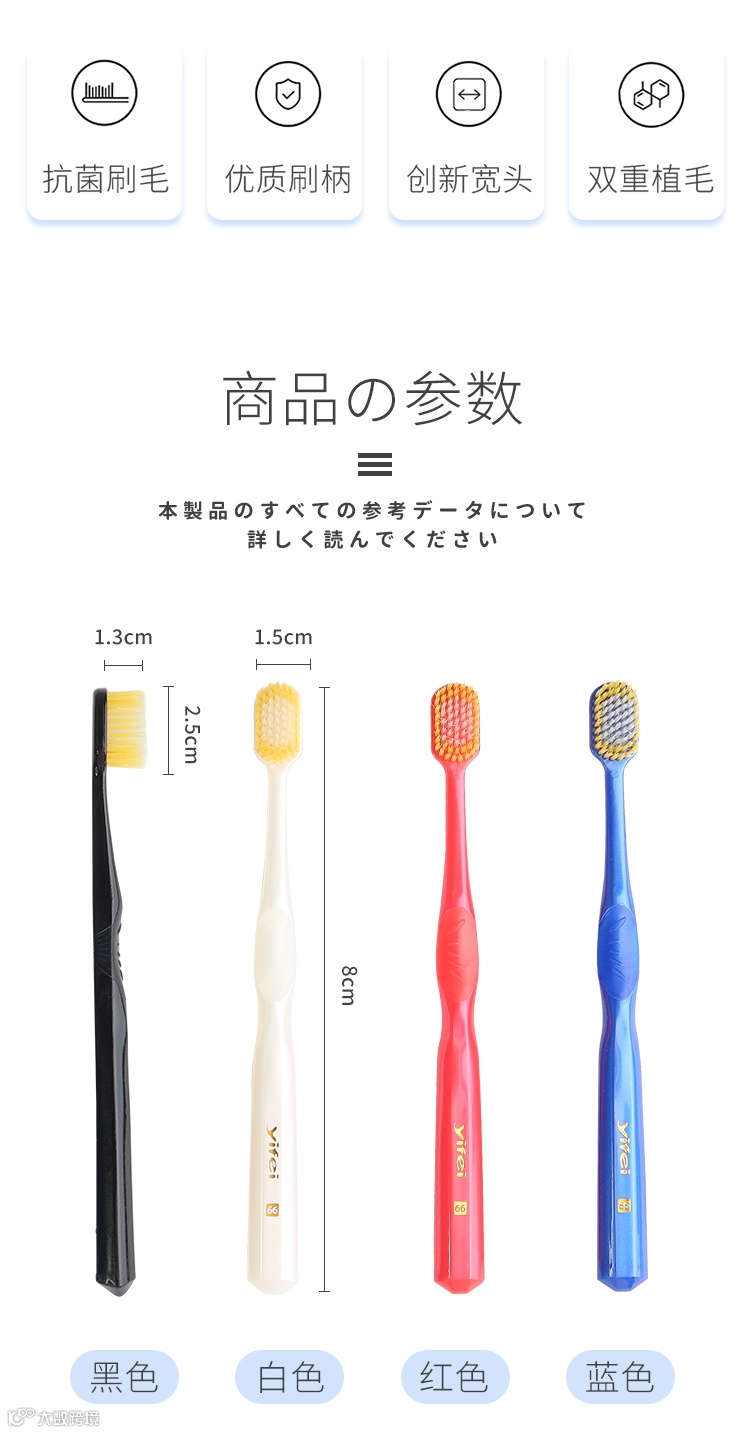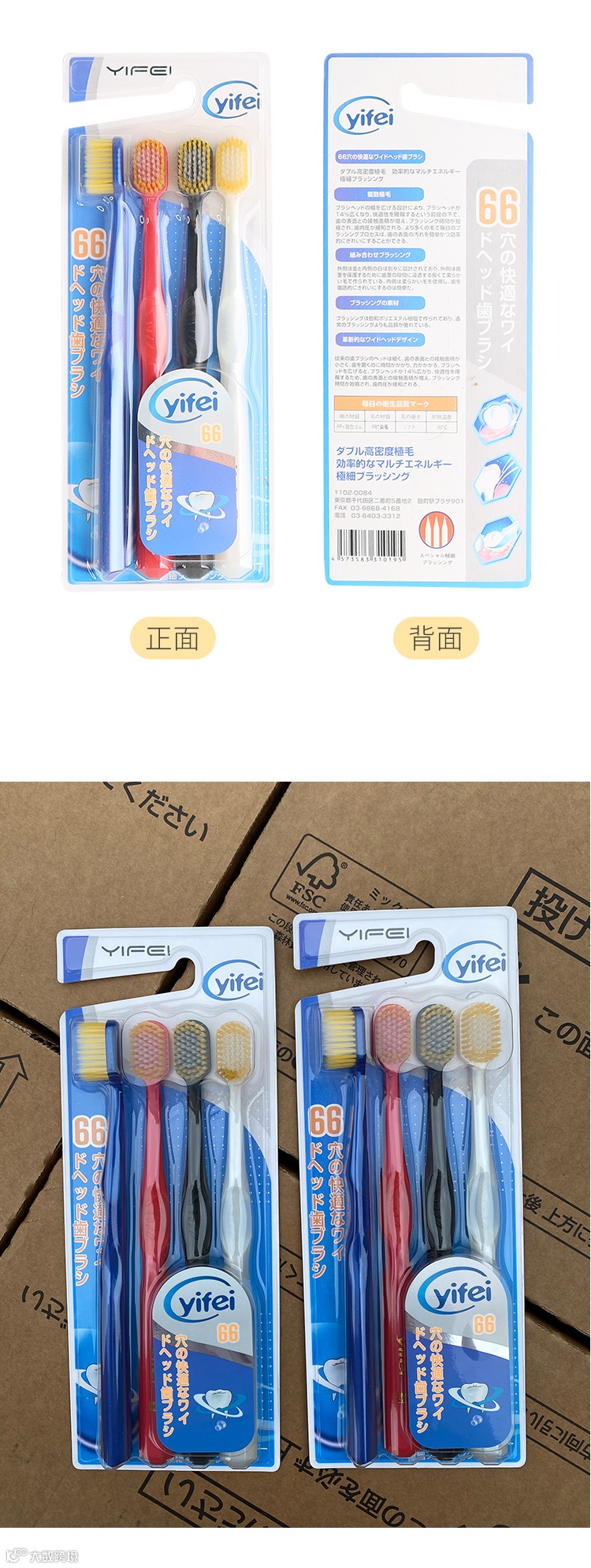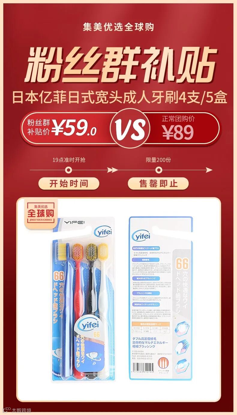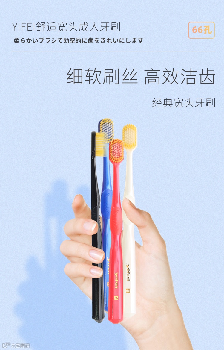 【粉丝群补贴】日本YIFEI亿菲日式舒适宽头成人牙刷66孔4支/5盒 原价:89元 粉丝群补贴价:59元