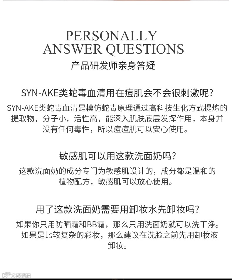 【产品功效】温和清洁,轻松洗掉化妆品残留,针对痘肌进行深度控油,维持肌肤水油平衡