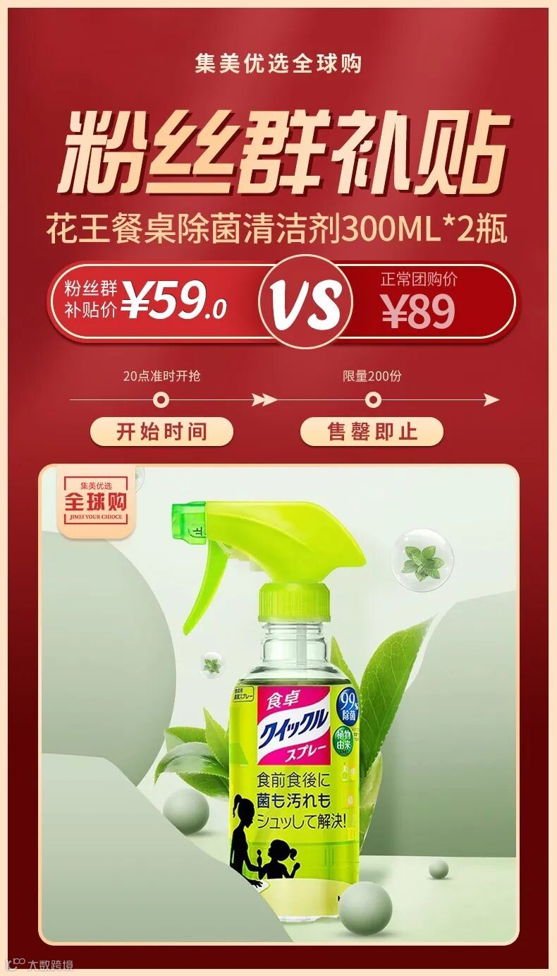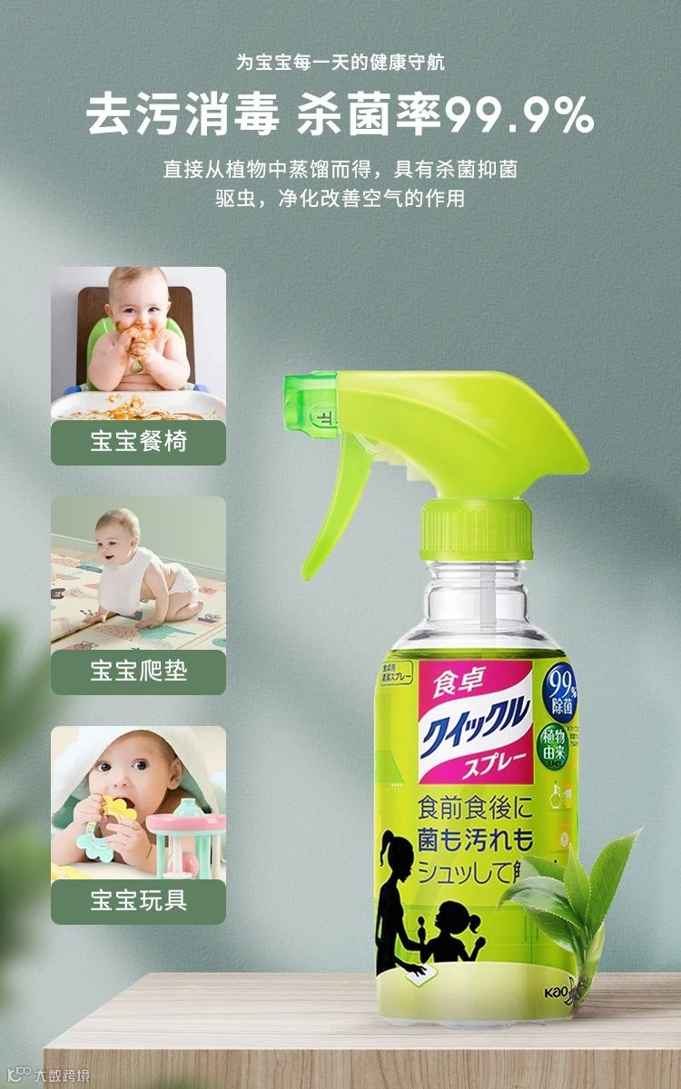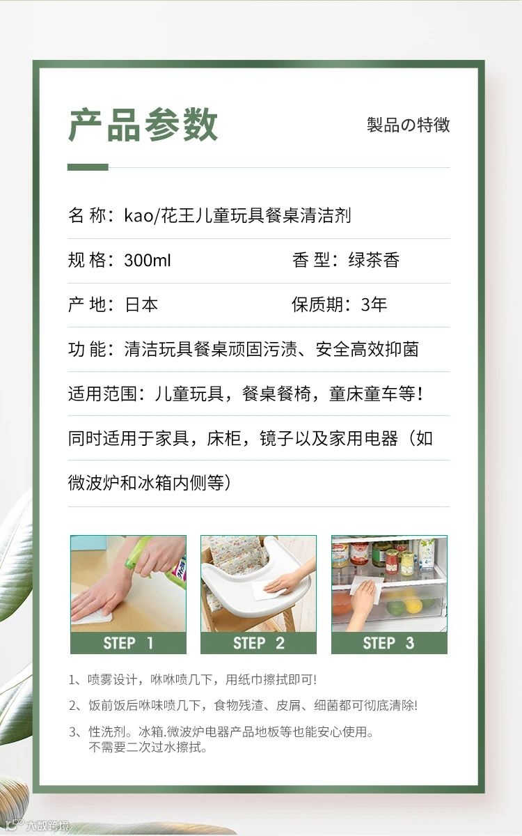 【粉丝群补贴】日本花王KAO餐桌除菌清洁剂300ml*2瓶绿茶香 原价:89元 粉丝群补贴价:59元
