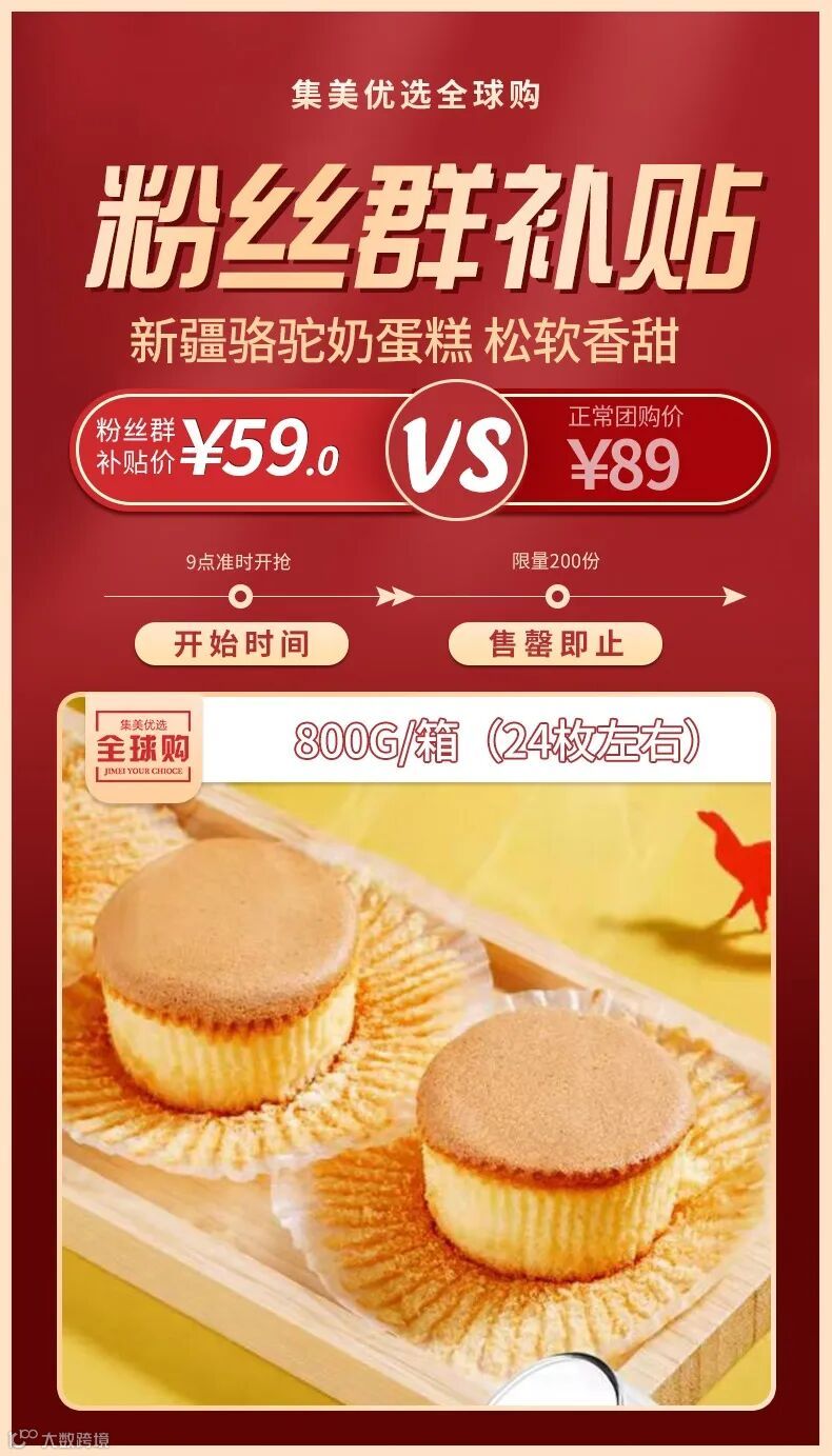 【粉丝群补贴】新疆骆驼奶蛋糕 松软香甜800g/箱(24枚左右) 原价:89元 粉丝群补贴价:59元