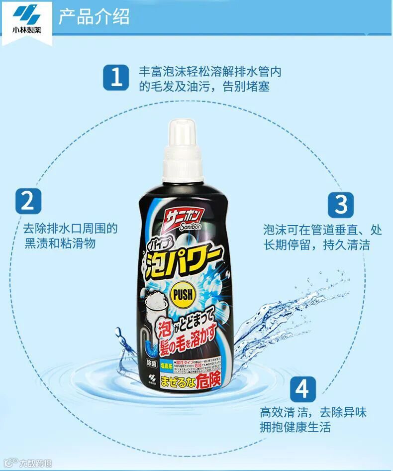 【粉丝群补贴】小林制药排水管道清道夫泡沫装通马桶厨房下水道疏通清洁剂400ml 原价:59元 粉丝群补贴价:29.9元